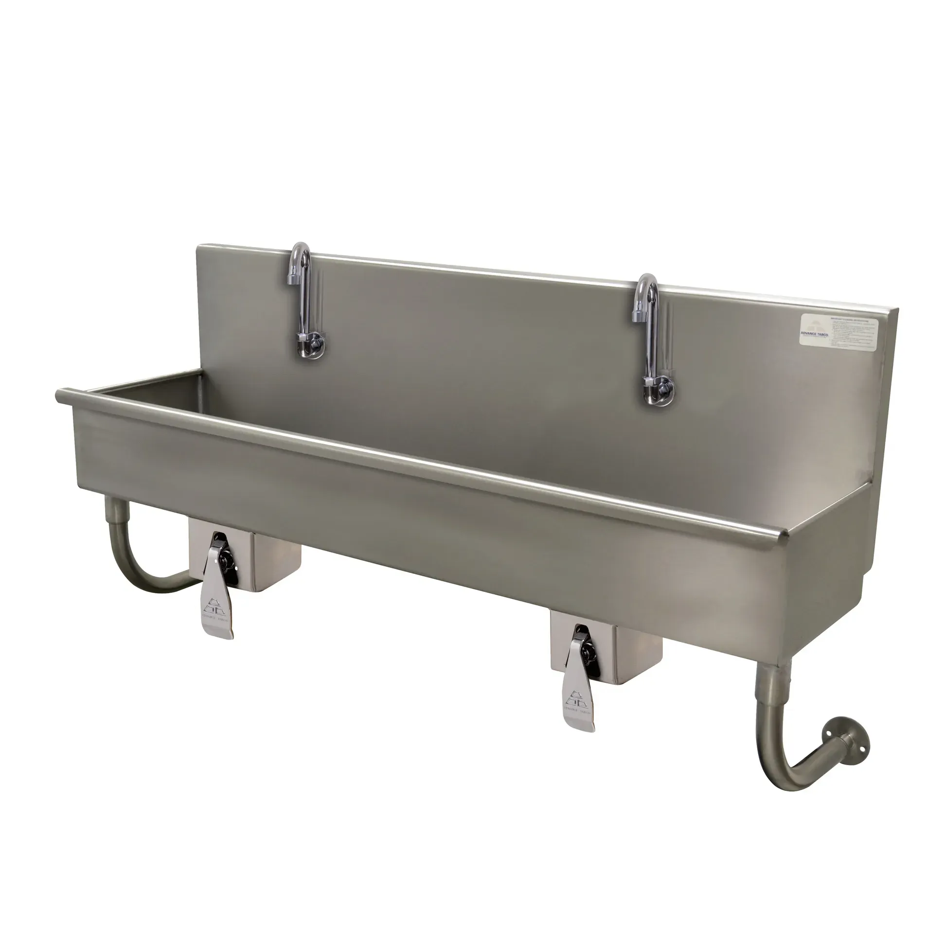 Elevate your culinary experience with the Advance Tabco 19-18-40KV Hand Sink. This wall-mounted sink is designed specifically for commercial restaurant use, providing convenience and efficiency in your kitchen. Made with 16 gauge 304 stainless steel construction, this sink is built to withstand the demands of a busy restaurant environment. The 8-1/2" high backsplash ensures that water stays contained, while the 16" front-to-back x 8" deep bowl size provides ample space for washing and rinsing. The sink is punched with two single faucet holes and comes with gooseneck spouts for easy water access. It also includes a basket drain for added convenience. With tubular stainless steel wall supports, this sink is sturdy and reliable. Upgrade your restaurant's handwashing station with the Advance Tabco 19-18-40KV Hand Sink.