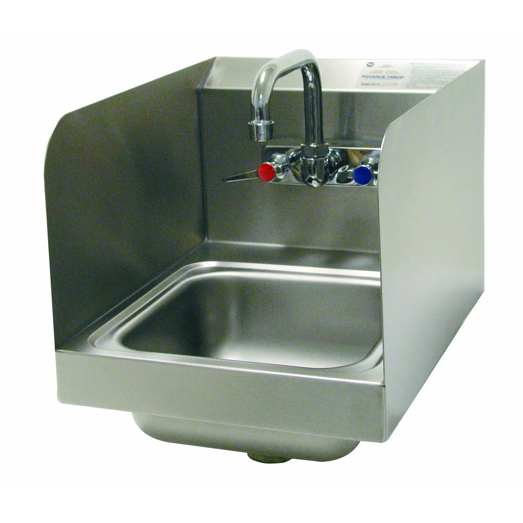 Achieve culinary excellence with the Advance Tabco, 7-PS-56 Hand Sink. This wall-mounted hand sink is designed to meet the rigorous demands of a commercial restaurant setting. Made from 20 gauge 304 stainless steel, it is durable and resistant to corrosion, ensuring long-lasting performance. The 9" wide x 9" front-to-back x 5" deep bowl provides ample space for handwashing, while the side splashes help contain water and prevent splashing. The splash-mounted faucet and drain with strainer plate make it easy to use and maintain cleanliness. With its NSF and cCSAus certifications, you can trust that this hand sink meets the highest standards of sanitation and safety. Whether you're running a busy kitchen or a bustling bar, the Advance Tabco, 7-PS-56 Hand Sink is an essential addition to your commercial restaurant equipment.