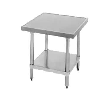 Support daily operations with the Budget Equipment Stand, a reliable and cost-effective solution for your restaurant's kitchen needs. Measuring 30 inches wide, 30 inches deep, and 24 inches high, this stand is designed to provide ample space for your essential kitchen equipment. The top is crafted from durable 430 stainless steel, ensuring a robust and easy-to-clean surface that can withstand the rigors of a busy kitchen environment. The Budget Equipment Stand also features a galvanized adjustable undershelf, offering additional storage space for your kitchen tools and supplies. This undershelf can be customized to fit your specific needs, making it a versatile addition to your kitchen setup. The stand's galvanized legs are built to last, providing sturdy support for your equipment. Each leg is equipped with adjustable plastic bullet feet, allowing you to level the stand on uneven surfaces and ensuring stability during use. Certified by NSF, the Budget Equipment Stand meets the highest standards for public health and safety, giving you peace of mind as you prepare meals for your customers. Invest in the Budget Equipment Stand to enhance the efficiency and organization of your kitchen, making it easier to deliver exceptional dining experiences every day.