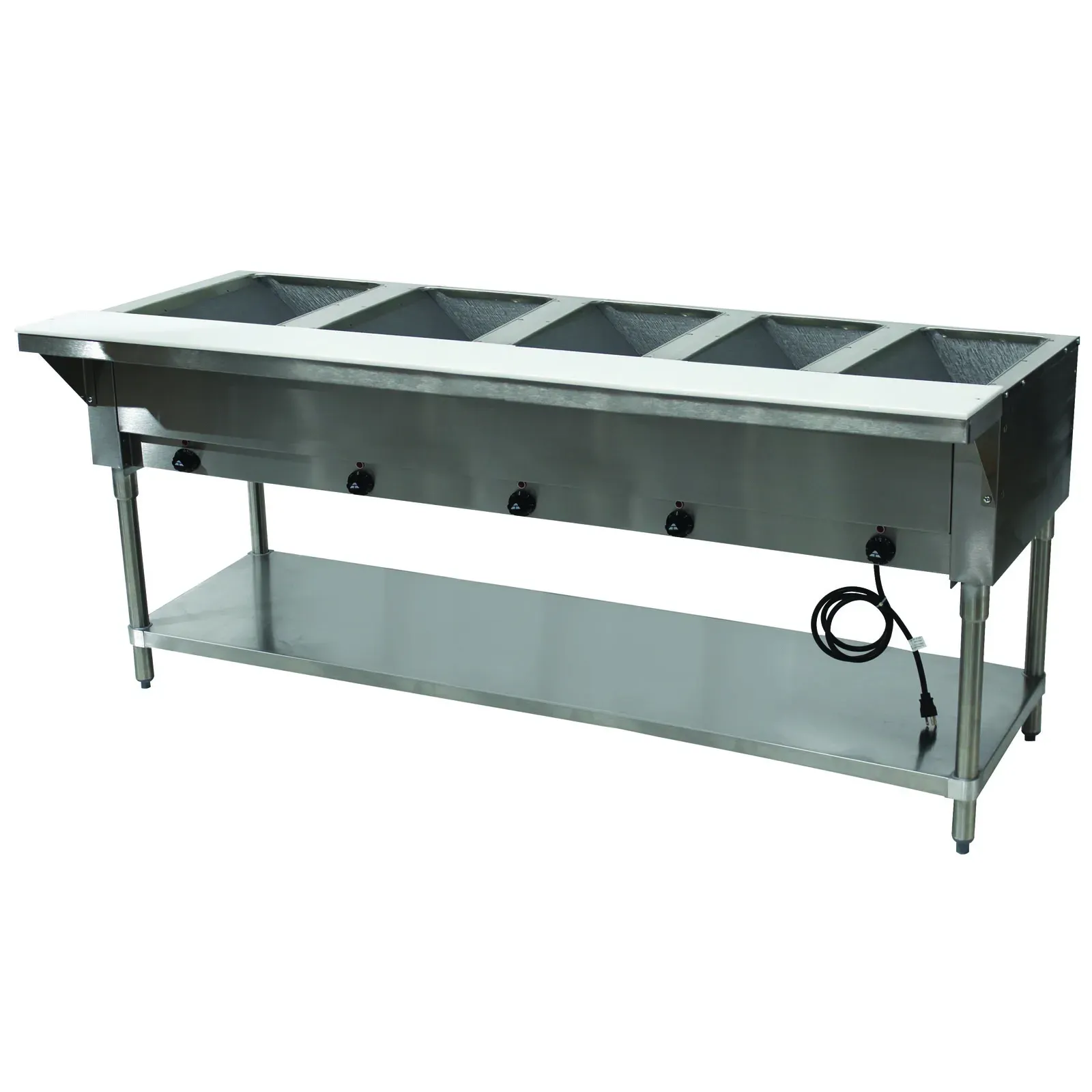 Optimize your space with the Advance Tabco Hot Food Table, a versatile and efficient solution for any restaurant setting. The HF-5E-240 model is designed to meet the high demands of a busy kitchen, offering a spacious 77-3/4"W x 30-5/8"D x 34-3/8"H footprint that fits seamlessly into your workflow.