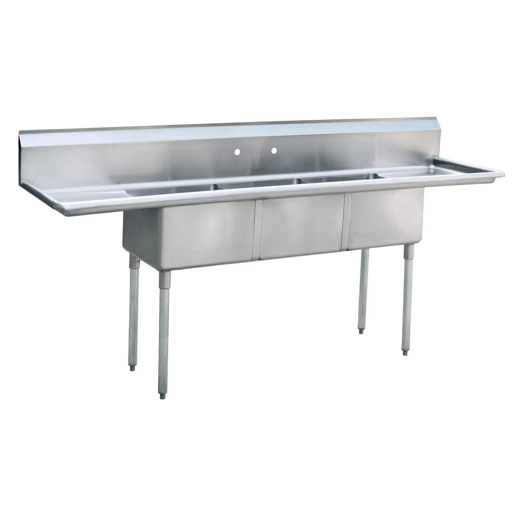 Achieve kitchen supremacy with the Atosa USA, MRSA-3-D Sink, (3) Three Compartment. This sink is a game-changer for any commercial restaurant, offering top-notch quality and functionality. With its 18 gauge stainless steel construction, it is built to withstand the demands of a busy kitchen. The three 18"W x 18" front-to-back x 12" deep sink compartments provide ample space for washing, rinsing, and sanitizing dishes, ensuring efficient workflow and cleanliness. The 18" left and right drainboards offer convenient drying areas, reducing the need for additional equipment. The galvanized legs and adjustable ABS feet provide stability and durability, making this sink a long-lasting investment. NSF certified, it meets the highest standards of sanitation and hygiene. Whether you're running a bustling restaurant or a busy catering service, the Atosa USA, MRSA-3-D Sink, (3) Three Compartment is the perfect addition to your kitchen, helping you achieve excellence in food preparation and service.
