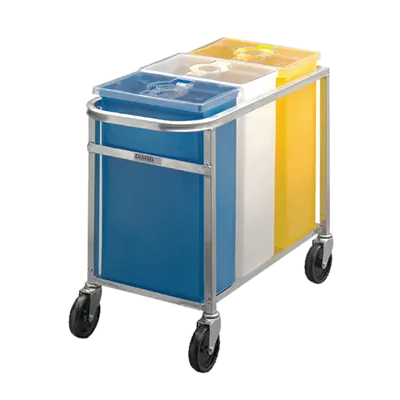 Introducing the Channel Manufacturing, 123P, Ingredient Bin - premium tools for culinary excellence. This set includes three bins in white, yellow, and blue, each with a 50 lbs. capacity, making it perfect for commercial restaurant use. The clear plastic covers allow for easy visibility and identification of ingredients, while the welded aluminum cart provides durability and mobility. With 5" swivel non-marking casters, you can effortlessly move the bins around your kitchen. This NSF-certified ingredient bin set is made in the USA, ensuring its authenticity and quality. Channel Manufacturing, a trusted vendor in the industry, offers this product with flyer list pricing. Whether you're a professional chef or a restaurant owner, this ingredient bin set is a must-have for efficient ingredient storage and organization. Upgrade your kitchen with this reliable and practical solution today.