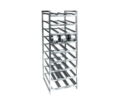 Transform kitchen service with the Channel Manufacturing CSR-9 Can Storage Rack. This full-size, stationary rack is designed to optimize storage space in commercial restaurants. With dimensions of 25-1/2"W x 35"D x 76"H, it can hold up to 162 #10 cans or 216 #5 cans, making it perfect for high-volume establishments. The welded aluminum construction ensures durability and longevity, while the front or rear loading feature provides convenience and flexibility. This NSF-certified rack is made in the USA by Channel Manufacturing, a trusted name in the industry. Its sleek design and sturdy build make it a valuable addition to any kitchen, allowing for efficient organization and easy access to canned goods. Upgrade your restaurant's storage capabilities with the Channel Manufacturing CSR-9 Can Storage Rack and experience improved efficiency and productivity.