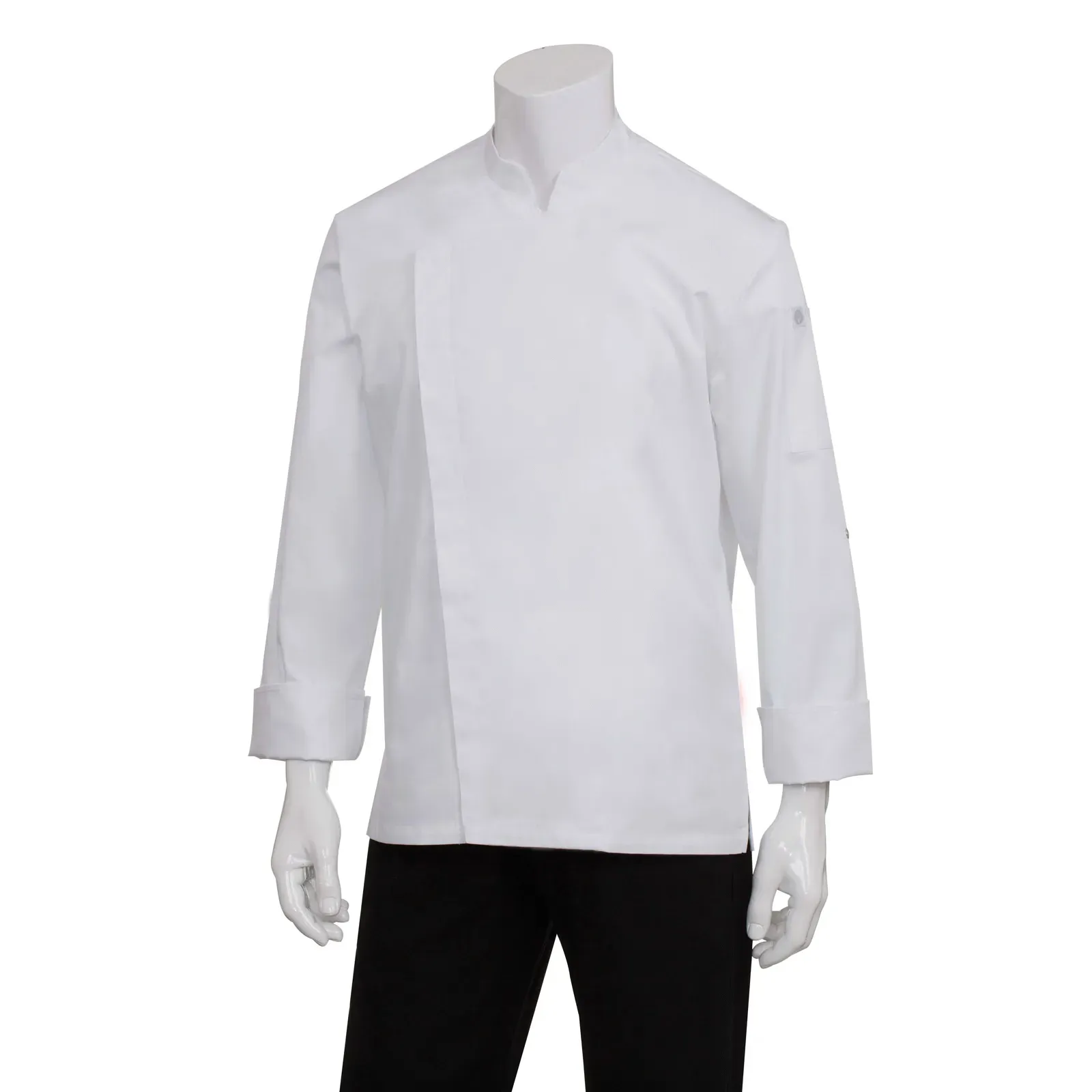 Elevate your kitchen's professional look with the Chef Works BCMC010WHT3XL Chef's Coat. This coat, part of the Chef Works Urban Collection, combines style and comfort to enhance your performance in the kitchen. Made with Cool Vent fabric on the back and sides, it ensures breathability and keeps you cool during long shifts. The roll-up long sleeves with tab allow for easy adjustment, whether you're getting down to work or meeting guests. The modern fit and concealed snap front give it a sleek and professional appearance. With side seam slits and a left sleeve thermometer pocket, this coat offers convenience and functionality. Crafted from a durable 65/35 poly/cotton twill blend, it is built to withstand the demands of a commercial restaurant setting. Available in white and size 3XL, this Chef's Coat from Chef Works is a must-have for any culinary professional.