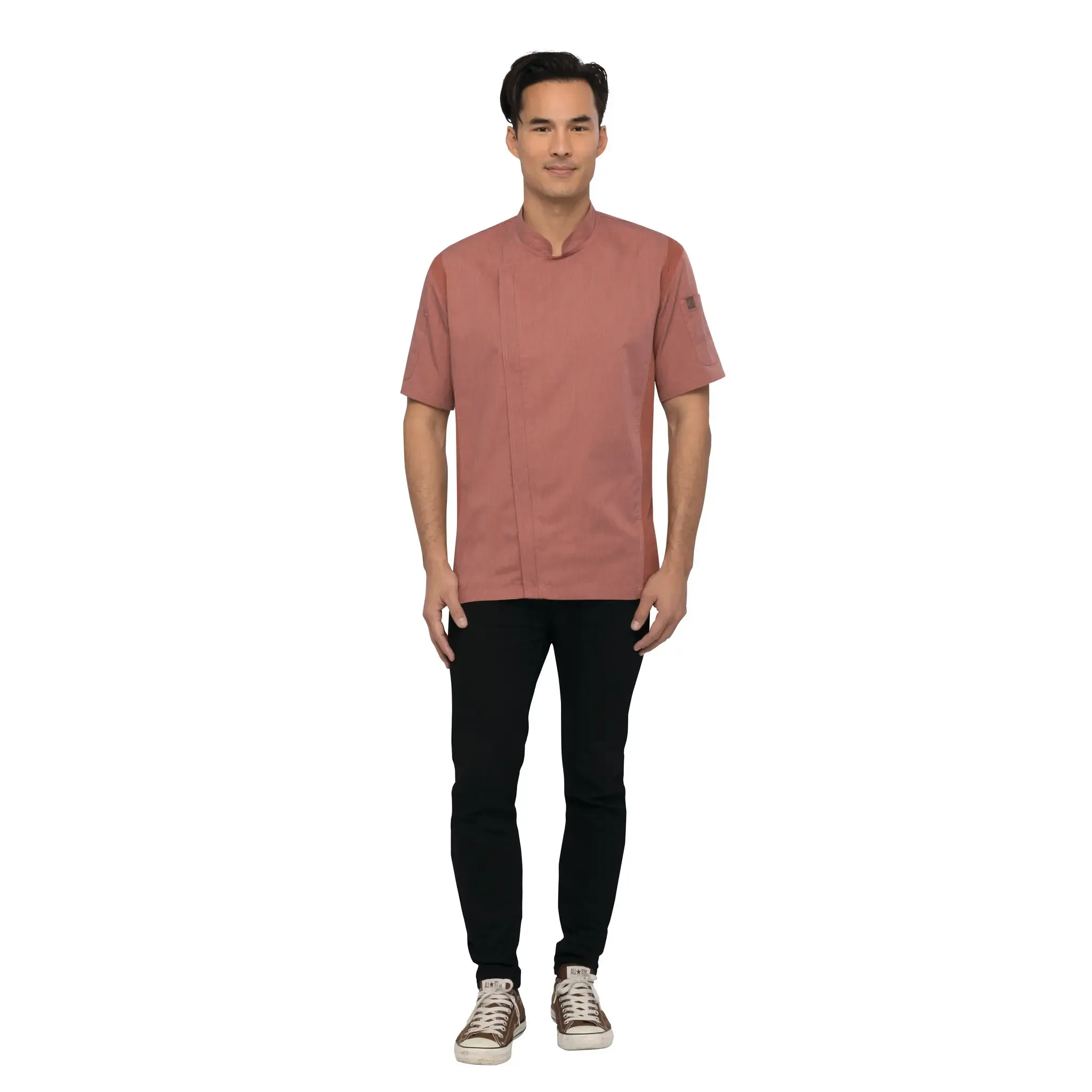 Crafted for chefs, embraced by kitchens. Introducing the Chef Works BCSZ009BRI3XL Chef's Coat, a top-selling coat from the Chef Works Urban Collection. This single-breasted coat is designed with short sleeves and Cool Vent panels, ensuring you stay cool and comfortable even in the hottest kitchen. The 2-way separating zipper allows for easy on and off, while the side seam slits provide added mobility. With a modern fit and made from a durable 65/35 poly/cotton twill fabric in a stylish brick color, this coat is both functional and fashionable. It features a back collar apron holder with an engraved snap, a left sleeve rounded thermometer pocket, and a right sleeve rounded cell phone/notebook pocket. Perfect for commercial restaurant use, the Chef Works BCSZ009BRI3XL Chef's Coat is a must-have for any professional chef.
