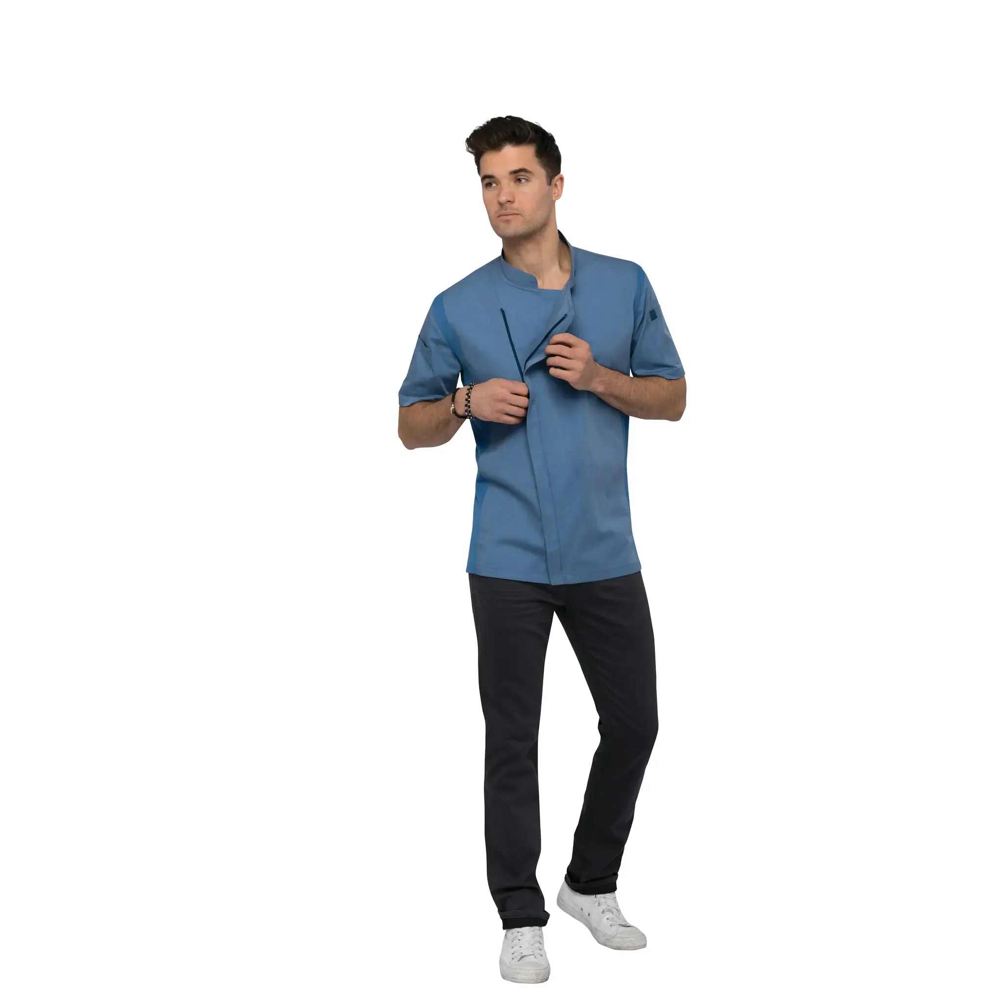 Inspire culinary excellence in style with the Chef Works BCSZ009SKYL Chef's Coat. This top-selling coat from the Chef Works Urban Collection is designed for the demands of a commercial restaurant setting. The Springfield Chef Coat features short sleeves and Cool Vent panels, ensuring you stay cool and comfortable even in the heat of the kitchen. The 2-way separating zipper allows for easy on and off, while the side seam slits provide added mobility. With a modern fit and a sky blue color, this coat combines functionality with a sleek and professional look. It also includes convenient features like a thermometer pocket on the left sleeve and a cell phone/notebook pocket on the right sleeve. Made from a durable poly/cotton twill blend, this coat is built to withstand the rigors of a busy kitchen. Elevate your chef's attire with the Chef Works BCSZ009SKYL Chef's Coat and make a statement in the kitchen.