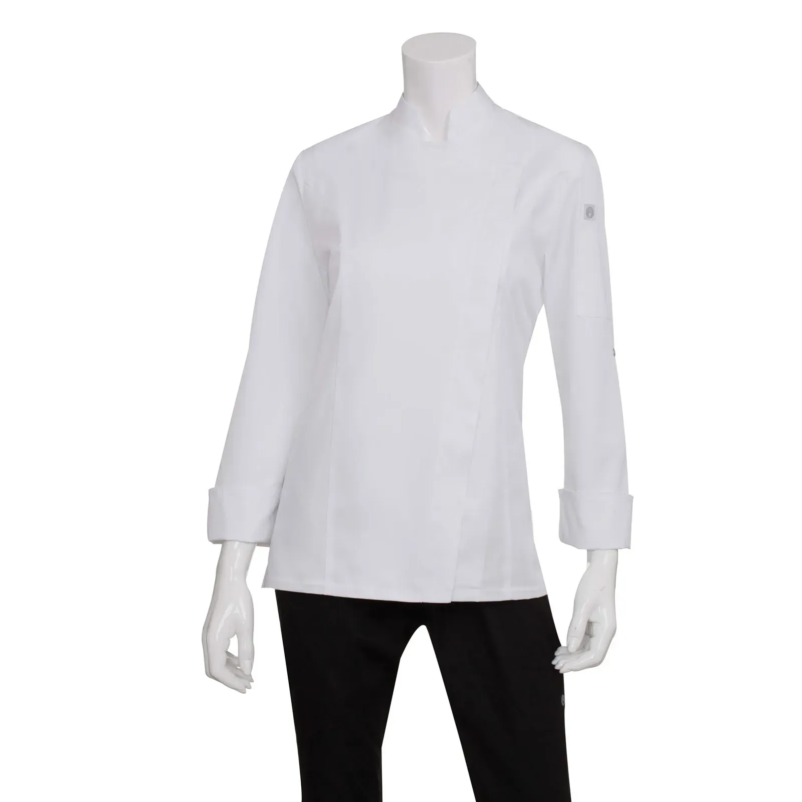 Introducing the Chef Works BCWMC007WHT2XL Chef's Coat, a must-have for any commercial restaurant. This slim-fit coat is not only functional but also incredibly flattering, designed with the feminine form in mind. The Cool Vent paneling on the backs and sides ensures you'll always keep your cool, even in the heat of the kitchen. The roll-up long sleeves with tab and side seam slits provide added comfort and flexibility, allowing you to move freely while working. With a concealed snap-front placket, this coat creates clean lines for a polished and professional look. It also features a left sleeve thermometer pocket, perfect for keeping your tools within reach. Made from a durable 65/35 poly/cotton twill blend, this coat is built to withstand the demands of a busy kitchen. Upgrade your chef essentials with the Chef Works BCWMC007WHT2XL Chef's Coat and elevate your culinary space.