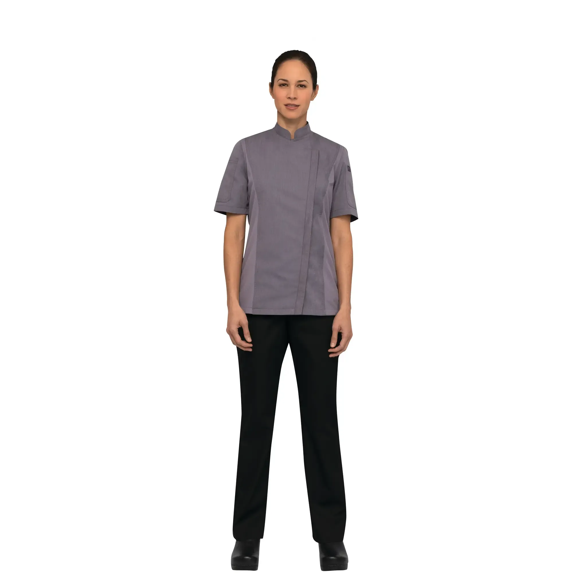 Infuse professionalism into every dish with the Chef Works BCWSZ006PURM Chef's Coat. Designed specifically for women, this single-breasted coat is a best-seller for a reason. It features short sleeves and Cool Vent panels to keep you cool and comfortable during long shifts in the kitchen. The 2-way separating zipper allows for easy on and off, while the side seam slits provide added mobility. With a slim fit and made from a durable 65/35 poly/cotton twill fabric, this coat is both stylish and practical. It also includes a back collar apron holder with an engraved snap, a left sleeve rounded thermometer pocket, and a right sleeve rounded cell phone/notebook pocket. Whether you're a professional chef or a culinary student, the Chef Works BCWSZ006PURM Chef's Coat is a must-have for any commercial restaurant setting.
