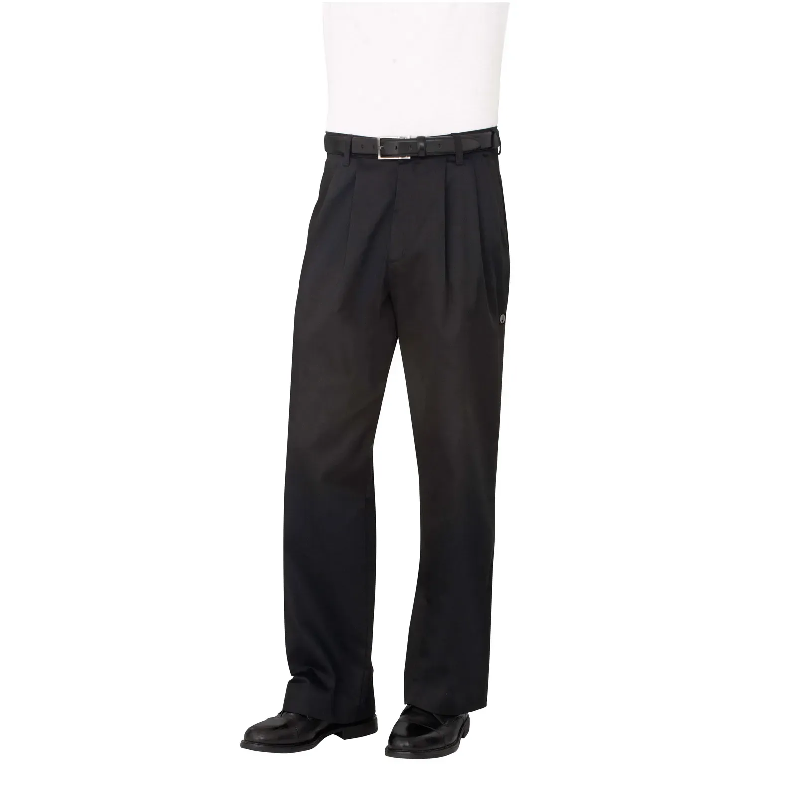 Enhance chef comfort and boost morale with the Chef Works, CEBP00048, Chef's Pants. Designed with culinary students and rookies in mind, these essential chef pants offer both style and functionality. The pleated front, belt loops, and classic fit ensure a professional appearance, while the relaxed hip and thigh provide comfort during long hours in the kitchen. The tapered leg opening adds a modern touch, making these pants suitable for any commercial restaurant setting. With a button closure, zipper fly, and unhemmed design, these pants can be easily customized to fit each individual chef. The two side-seam pockets and two back welt pockets with button closure offer ample storage space for essential tools and personal items. Made from a durable 65/35 poly/cotton blend, these black pants are built to withstand the demands of a busy kitchen. Elevate your chef's attire with the Chef Works, CEBP00048, Chef's Pants.