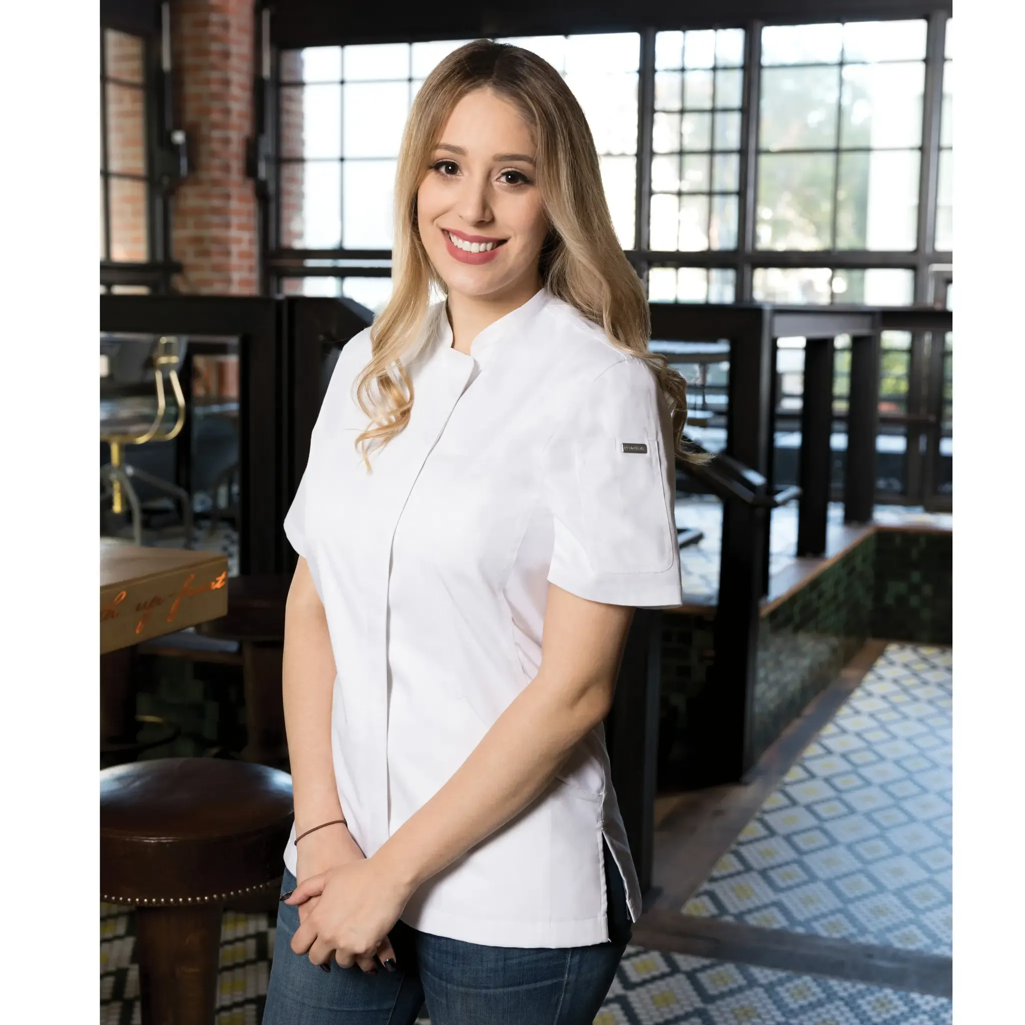 Crafted for chefs, embraced by kitchens. Introducing the Chef Works CES02WWHTXL Chef's Coat, designed for the executive chef who isn't afraid to blaze her own trail. This single-breasted Roxby Chef Coat puts your comfort front and center with its short sleeves and fine-twill fabric. The feminine design is both functional and flattering, ensuring you look and feel your best in the kitchen.