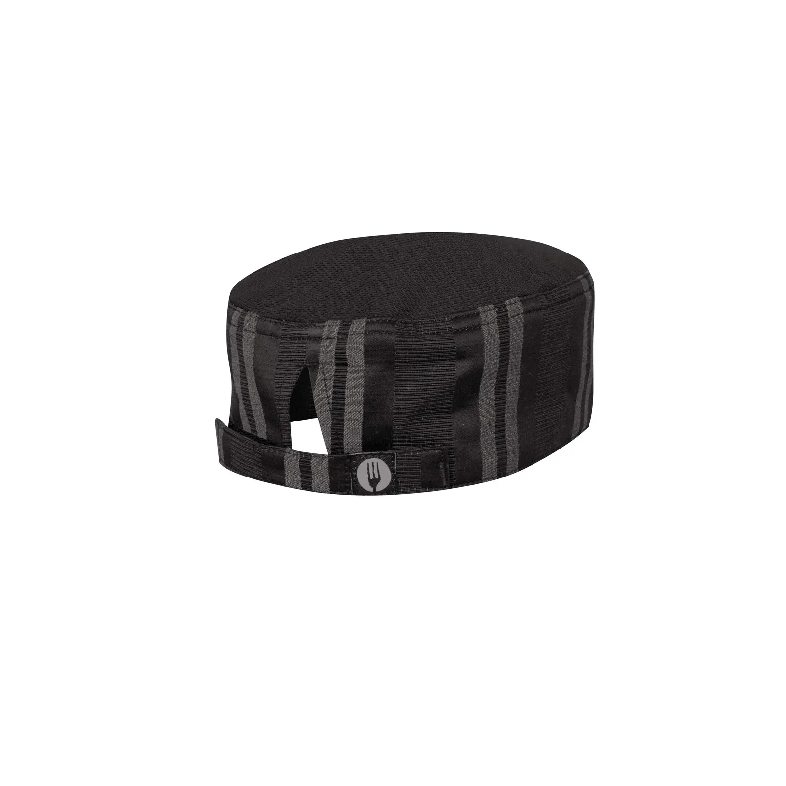 Introducing the Chef Works HB003BGY0 Chef's Hat, the ultimate solution for comfortable chef wear and unparalleled style in a commercial restaurant setting. This hat is designed to combat heat with its innovative Presidio Cool Vent Beanie, featuring a contrast Cool Vent top that allows cool air to flow freely. The moisture-wicking finish ensures you stay dry and comfortable throughout your busy shifts. With an adjustable Velcro closure, this hat offers a customizable fit for all head sizes. Made from a blend of 62% cotton and 34% polyester, it combines durability with breathability. The black and gray color scheme adds a touch of sophistication to your chef uniform. Elevate your culinary experience with the Chef Works HB003BGY0 Chef's Hat and enjoy the perfect blend of style and functionality.