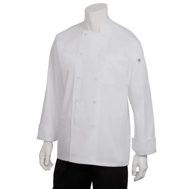 Elevate your kitchen's visual appeal with the Chef Works JLLSWHT2XL Chef's Coat. This Calgary Chef Coat offers a perfect blend of executive features and affordability, making it an ideal choice for commercial restaurant use. Crafted with lite-twill fabric and a Cool Vent back yoke, this coat ensures maximum comfort and breathability, keeping you cool even during the busiest shifts. The turn-back cuffs and cloth-covered buttons add a touch of traditional elegance, giving you a polished and professional look. With its left chest patch and thermometer pockets, you'll have easy access to essential tools while maintaining a classic fit. Made from a durable 65/35 poly/cotton twill blend, this white coat is designed to withstand the demands of a busy kitchen. Whether you're a chef or a line cook, the Chef Works JLLSWHT2XL Chef's Coat is a must-have for any commercial restaurant setting.