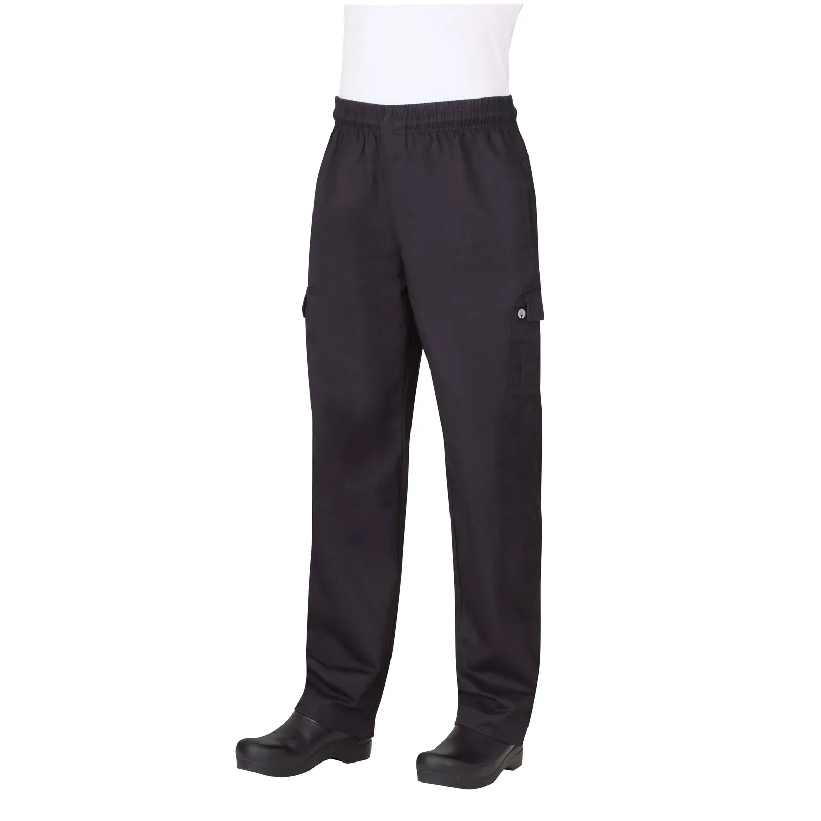 Comfort meets style for kitchen leaders with Chef Works, PC001BLKM, Chef's Pants. These cargo pants are designed to meet the needs of busy chefs in commercial restaurant settings. Made from 100 percent cotton, they offer a relaxed fit through the thigh and leg, ensuring maximum comfort during long hours in the kitchen. The pants feature six pockets, including two side cargo pockets with Velcro flaps, providing ample storage space for essential tools and ingredients. The elastic waistband with a drawstring ensures a secure and comfortable fit, while the full zipper fly adds convenience. With a classic black color, these pants exude professionalism and style. Whether you're a head chef or a line cook, these Chef's Pants from Chef Works are a must-have for any culinary professional.