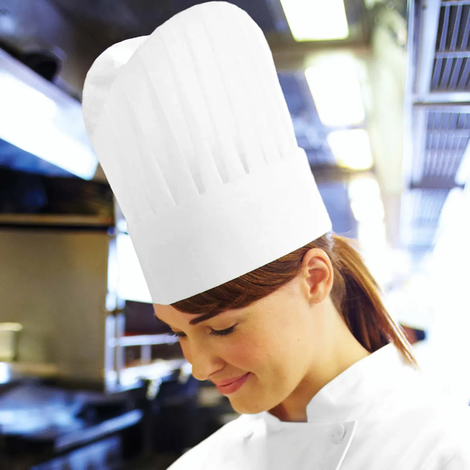 Introducing the Chef Works, PLEAWHT12, Chef's Hat—a must-have for elevating chef presence and amplifying taste in any commercial restaurant. This European-style chef's hat is crafted from a lightweight polyester/viscose blend, ensuring comfort and breathability during long hours in the kitchen. The oval top pleat adds a touch of sophistication, while the fully adjustable Velcro back guarantees a perfect fit for all. With its non-woven construction and one-size-fits-most design, this hat is both practical and versatile. Whether you're a seasoned chef or a culinary enthusiast, the Chef Works, PLEAWHT12, Chef's Hat is an essential accessory that exudes professionalism and style. Elevate your culinary experience with this premium chef's hat.