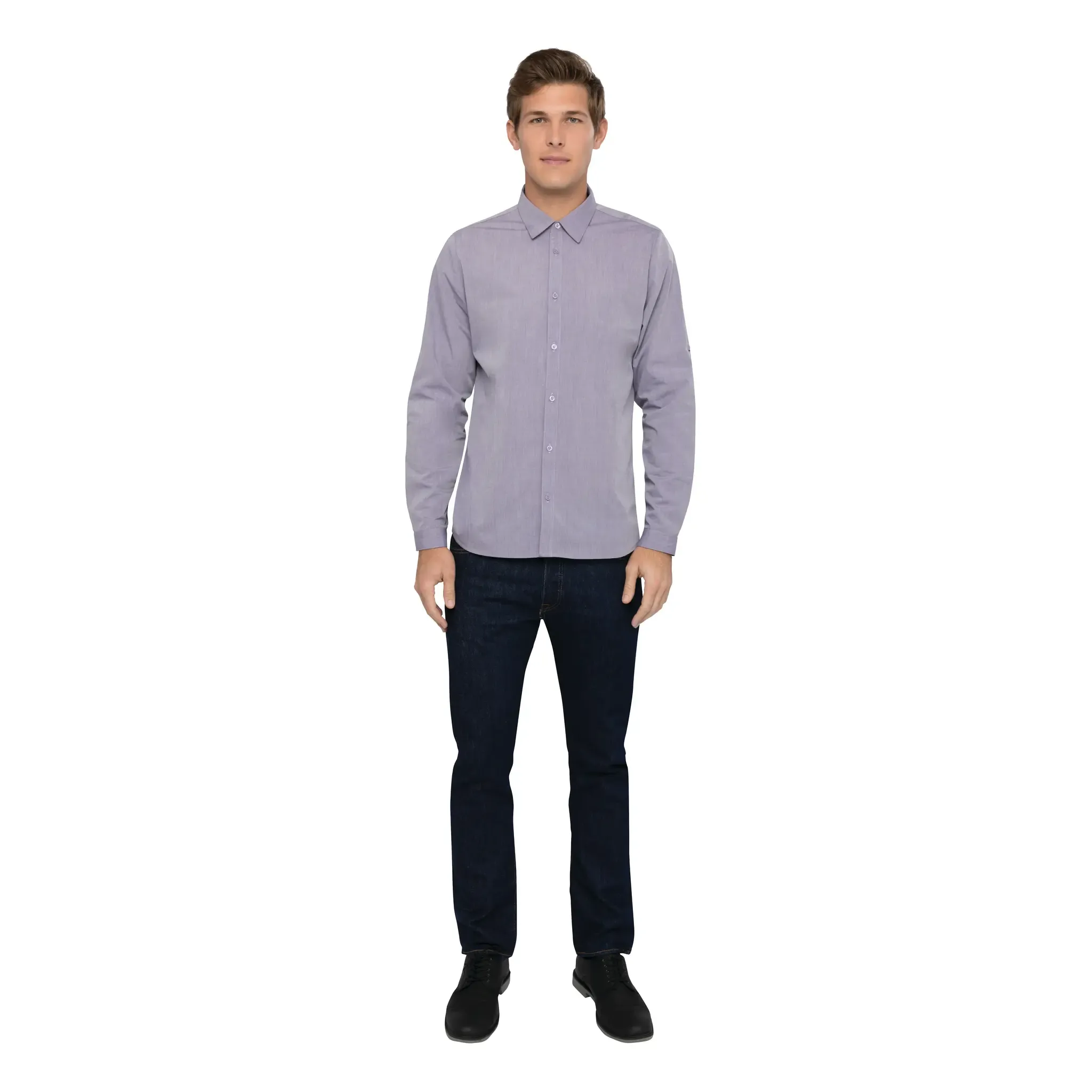 Introducing the Chef Works SHC06PUR2XL Cook's Shirt, a timeless and sophisticated addition to any restaurant uniform program. This men's modern chambray dress shirt exudes class and elevates the overall look of your staff. With its roll-up long sleeves and button tab, your employees can easily adapt to changing temperatures in the kitchen. The two-button cuffs add a touch of refinement, while the side-hem detail and back yoke with pleats provide a flattering fit. Made from a durable 65/35 poly/cotton blend, this shirt is built to withstand the demands of a busy commercial kitchen. The tonal button front closure adds a seamless finish to the modern fit. In a striking purple color and size 2XL, this shirt combines style and functionality, ensuring your team looks and feels their best. Trust Chef Works for chef style that resonates in every dish.
