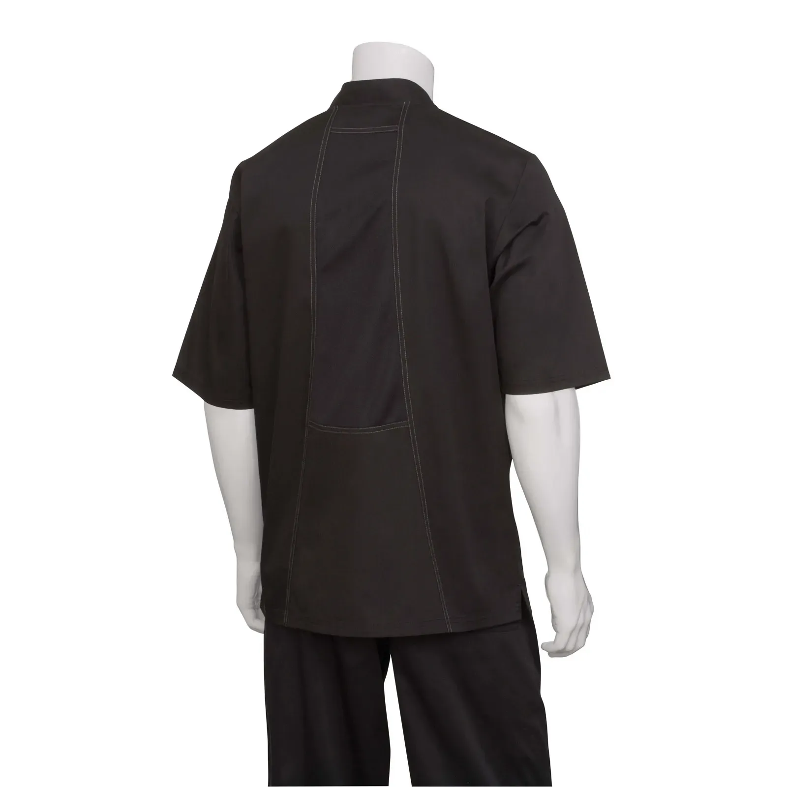 Boost kitchen confidence with style with the Chef Works VSSSBBKS Chef's Coat. This Valais Chef Coat is designed to keep you cool and comfortable during long hours in the kitchen. The Cool Vent paneling and short sleeves provide excellent breathability, while the side-seam slits allow for easy movement. The cloth-covered buttons and branded top snap add a touch of sophistication to this classic black coat. With a left chest patch and thermometer pockets, you'll have all your essentials within reach. Made from a durable 65/35 poly/cotton twill, this coat is built to withstand the demands of a commercial restaurant. Whether you're a chef, line cook, or server, the Chef Works VSSSBBKS Chef's Coat is the perfect choice for professional and stylish attire in the kitchen.
