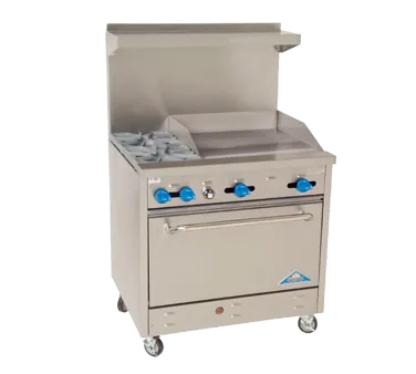 Modernize your kitchen for enhanced culinary experiences with the Comstock-Castle F330-24 Range. This gas range is designed specifically for commercial restaurant use, offering a wide range of features to elevate your cooking capabilities. With two 24,000 BTU star burners and 12" square cast iron grates, you can achieve precise heat control and even cooking results. The 24" griddle with manual controls provides additional cooking options, while the extra-wide 31" oven with enamel door and bottom linings allows for versatile baking and roasting. The stainless steel exterior, back riser, and high shelf not only add a sleek and professional look to your kitchen but also ensure durability and easy cleaning. With a 118,000 BTU rating and NSF and cETLus certifications, this range delivers exceptional performance and meets the highest safety standards. Upgrade your restaurant kitchen with the Comstock-Castle F330-24 Range and take your culinary creations to the next level.