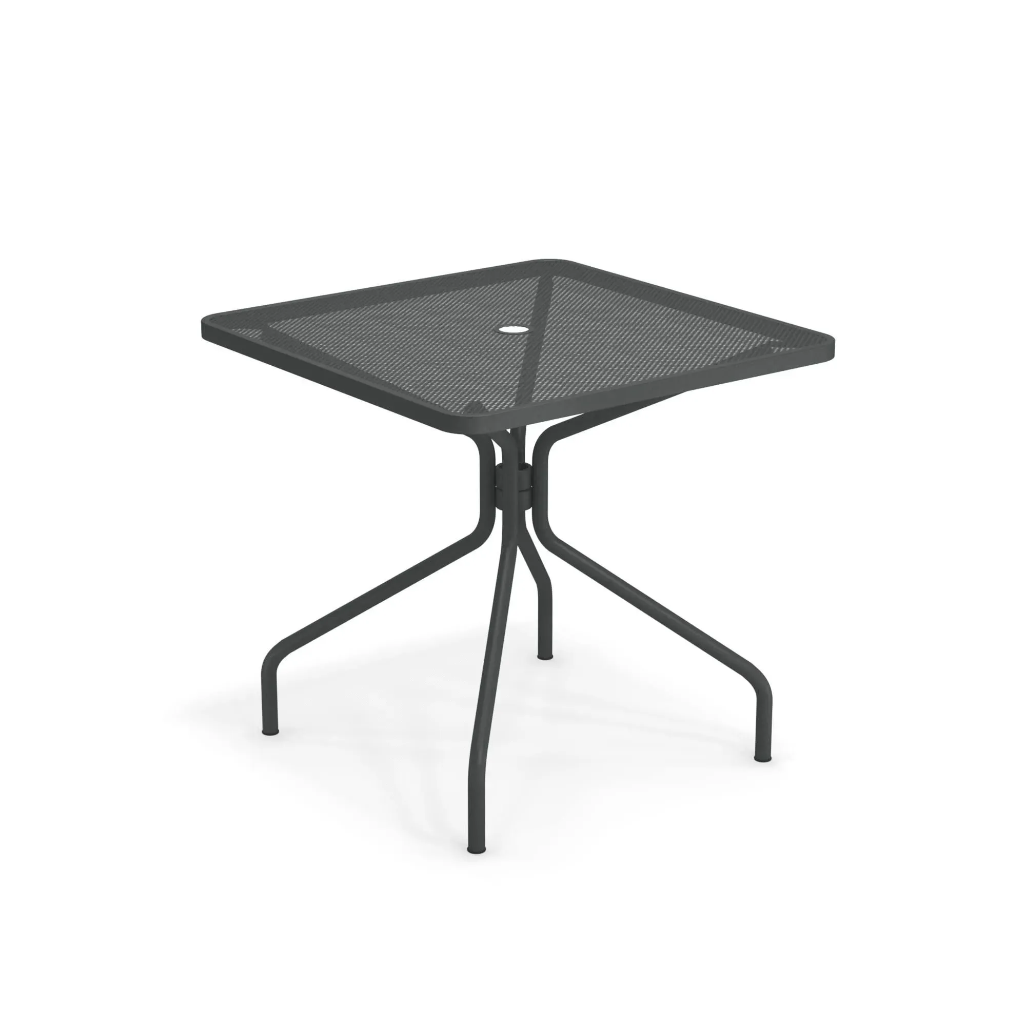 Optimize patio seating essentials with the emuamericas llc, 801-22 Outdoor Table. This square table is designed for commercial restaurant use, making it the perfect addition to any outdoor dining area. The table features a Cambi A/Iron mesh top, providing a durable and stylish surface for customers to enjoy their meals. The tubular steel legs are e-coated and powder coated for added strength and resistance to the elements. With a size of 32" x 32" x 29-1/2"H, this table offers ample space for guests to dine comfortably. It also includes a convenient umbrella hole, allowing you to provide shade on sunny days. The PVC foot caps, one of which is adjustable, ensure stability on any surface. Trust emuamericas llc for high-quality outdoor furniture that enhances the ambiance and functionality of your restaurant.