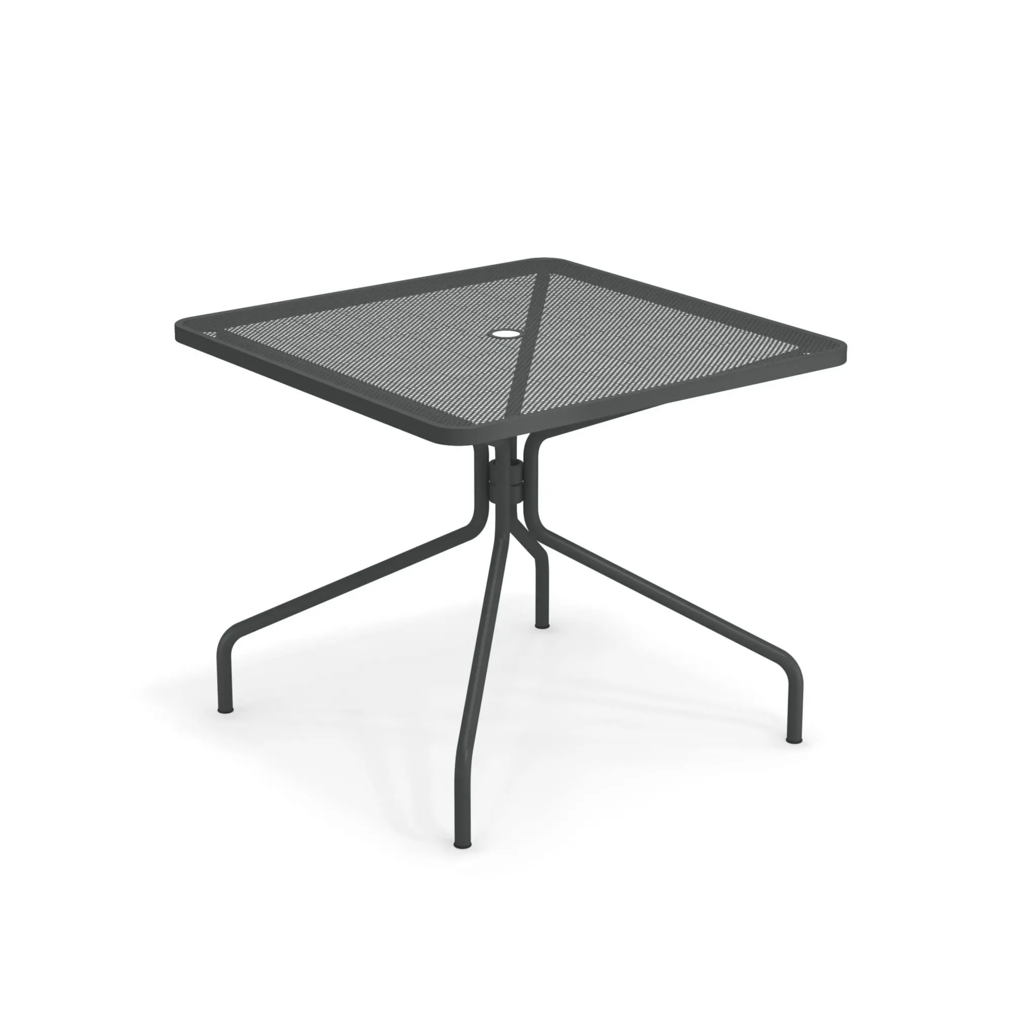 Upgrade your outdoor appeal and ambiance with the emuamericas llc, 802-22 Outdoor Table. This square table is perfect for commercial restaurant use, offering a sleek and modern design that will enhance any outdoor dining area. The table features a Cambi A/Iron mesh top, providing a durable and stylish surface for your guests to enjoy their meals. The tubular steel legs are e-coated and powder coated for added strength and resistance to the elements. With a size of 36" x 36" x 29-1/2"H, this table is spacious enough to accommodate multiple guests comfortably. It also includes a convenient umbrella hole, allowing you to provide shade on sunny days. The PVC foot caps, one of which is adjustable, ensure stability and protect your flooring. Trust emuamericas llc for high-quality outdoor furniture that will elevate your restaurant's outdoor dining experience.