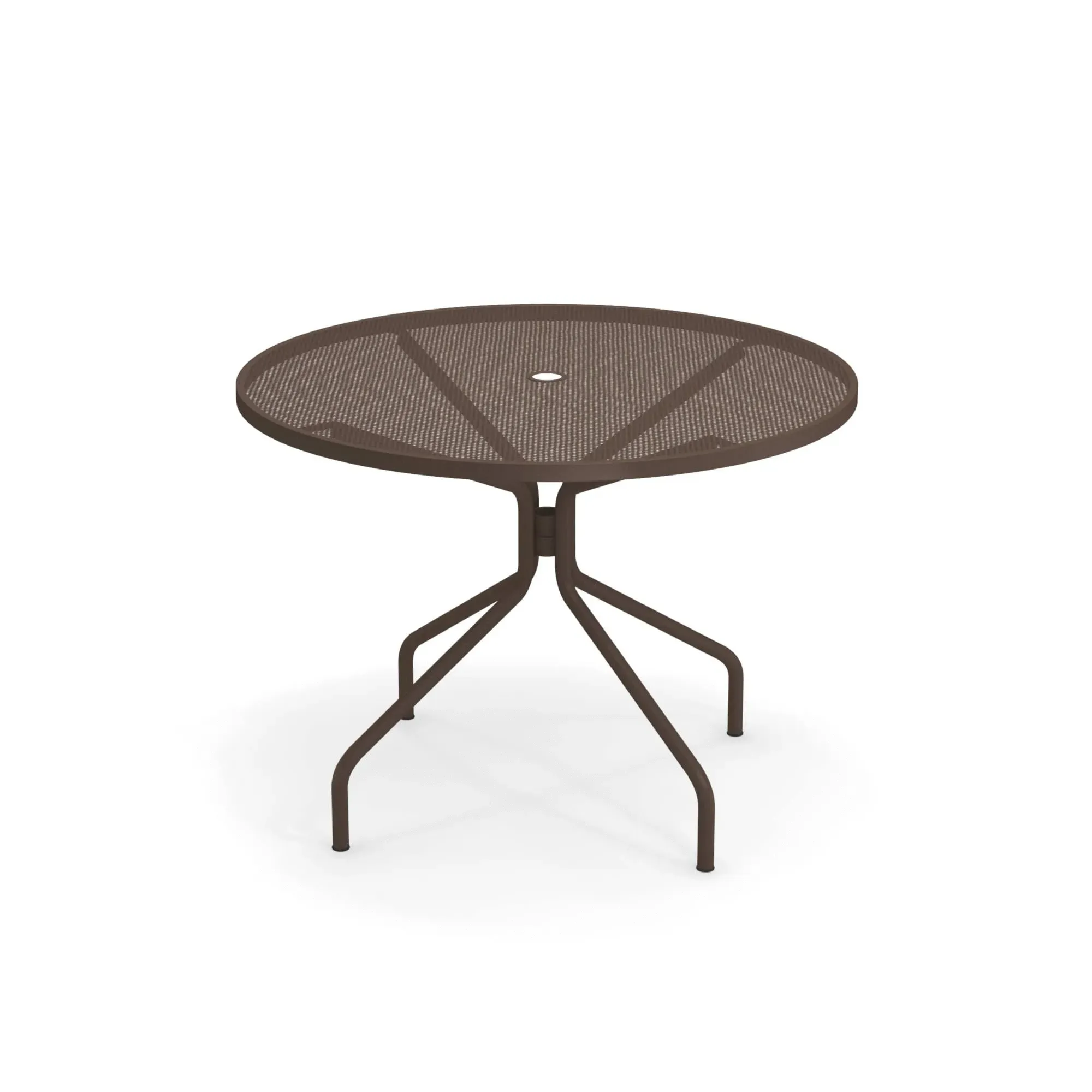 Maximize restaurant garden charm with the emuamericas llc, 804-41 Outdoor Table. This round table is designed to enhance the ambiance of any outdoor dining area, making it perfect for commercial restaurant use. The table features a Cambi A/Bronze mesh top that adds a touch of elegance and sophistication. Its tubular steel legs provide stability and durability, ensuring long-lasting performance even in high-traffic areas. The table is e-coated and powder coated for added protection against the elements, making it suitable for both indoor and outdoor use. With a 42" diameter and a height of 29-1/2", this table offers ample space for guests to dine comfortably. It also includes a convenient umbrella hole, allowing you to provide shade on sunny days. The PVC foot caps, one of which is adjustable, ensure stability on any surface. Elevate your restaurant's outdoor seating area with the emuamericas llc, 804-41 Outdoor Table.