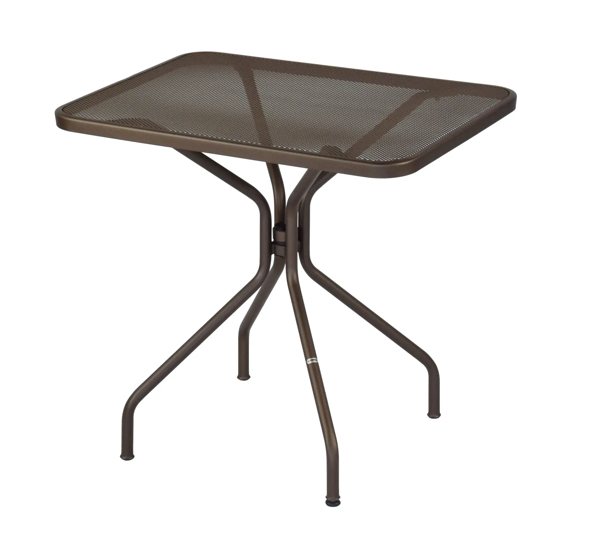 Optimize outdoor seating essentials with the emuamericas llc, 834-41, Table, Outdoor. This rectangular table is designed for commercial restaurant use, making it the perfect addition to any outdoor dining area. The table features a Cambi A/Bronze mesh top, providing a stylish and durable surface for customers to enjoy their meals. The tubular steel legs are e-coated and powder coated, ensuring long-lasting durability and resistance to the elements. With dimensions of 32" x 24" x 29-1/2"H, this table offers ample space for guests to dine comfortably. The PVC foot caps, including one adjustable cap, provide stability on any surface. Whether you're serving breakfast, lunch, or dinner, this table is a best seller for a reason. Elevate your restaurant's outdoor seating experience with the emuamericas llc, 834-41, Table, Outdoor.