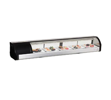 Achieve kitchen supremacy with the Everest Refrigeration ESC71L Display Case. Designed specifically for commercial restaurant use, this refrigerated sushi display case is a must-have for any sushi bar or restaurant. With its sleek black coated steel and ABS plastic exterior casing, this countertop display case adds a touch of elegance to any establishment. The curved glass and rear sliding glass doors provide easy access to the contents while keeping them fresh and visible to customers. The ESC71L can hold up to five plastic trays, allowing you to showcase a variety of sushi options. The temperature control and thermometer ensure that your sushi stays at the perfect temperature for serving. With its self-contained left mounted refrigeration and stainless steel floor, this display case is not only efficient but also easy to clean and maintain. Powered by R290 Hydrocarbon refrigerant and equipped with a 1/8 HP compressor, this display case is energy-efficient and environmentally friendly. Trust Everest Refrigeration to deliver high-quality, reliable equipment for your commercial kitchen needs.