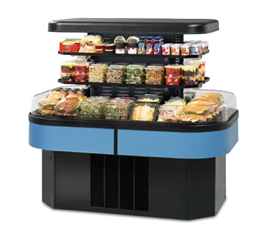 Variety unveiled in every showcase. Introducing the Federal Industries IMSS60SC-3 Display Case, Refrigerated, Self-Serve. This specialty display island self-serve refrigerated merchandiser is designed to enhance your commercial restaurant experience. With its adjustable temperature control and LED top and undershelf lighting, you can showcase your delectable offerings in the best light possible. The three tiers of adjustable black metal shelves provide ample space for displaying a wide range of products, while the curved air deflector ensures even cooling throughout. The black metal base, interior, and canopy add a sleek and modern touch to your establishment. With a choice of laminate finishes, you can customize the display case to match your restaurant's aesthetic. Powered by a 1-1/2 HP self-contained refrigeration system with a condensate evaporator, this display case is both efficient and reliable. Trust Federal Industries to deliver quality and style for your commercial restaurant needs.