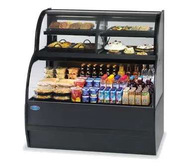Explore culinary delights effortlessly with the Federal Industries SSRC3652 Display Case. This specialty display convertible merchandiser is perfect for commercial restaurant use. The black exterior and tempered glass ends create an elegant and modern look, while the horizontal top light and tiered black display step enhance visibility and presentation. The adjustable black wire shelves and glass rear sliding doors make it easy to organize and access your products. Whether you need a refrigerated or non-refrigerated display, this case has you covered. The baffle system converts the display from non-refrigerated to refrigerated, and the lift-up thermopane front glass allows for easy access. Made in the USA and EPH Classified, this Federal Industries display case is a reliable and high-quality addition to any commercial restaurant.