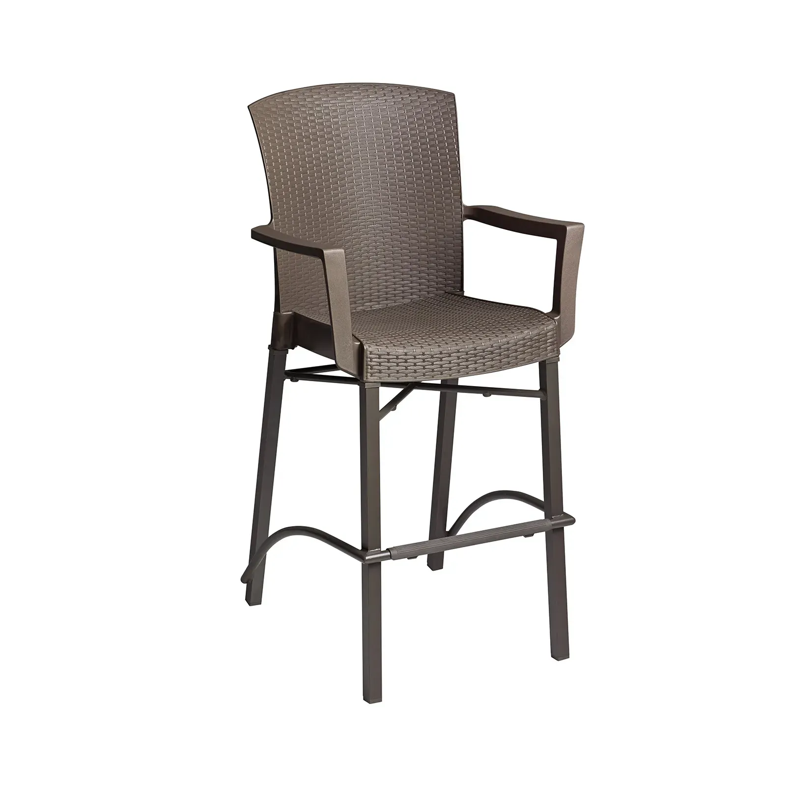 Stylishly built to withstand the elements, the Grosfillex Havana Classic Barstool is the perfect addition to any restaurant's outdoor seating area. Designed with both aesthetics and durability in mind, this barstool features a sophisticated synthetic wicker texture finish that complements any outdoor decor. The MPC technology resin ensures that the barstool remains color-fast, maintaining its rich charcoal hue even under harsh weather conditions.