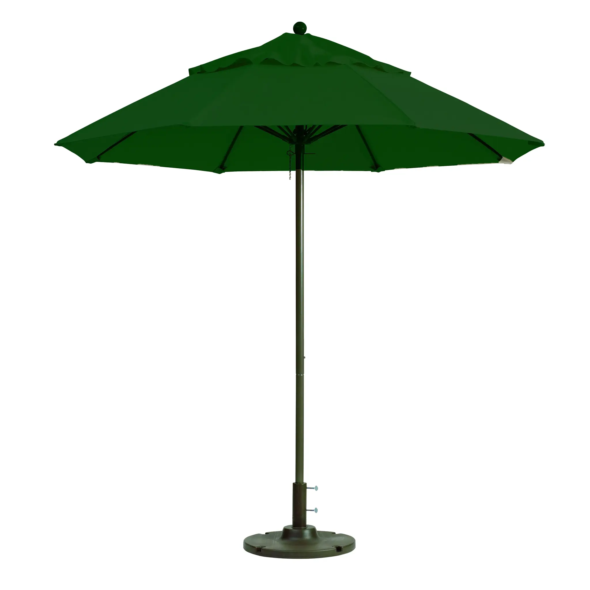 Enhance guest satisfaction with the Grosfillex 98382031 Umbrella. Designed with ergonomic excellence, this umbrella is perfect for commercial restaurant use. The 7-1/2 ft. round top provides ample shade for outdoor dining areas, ensuring a comfortable experience for your customers. The 1-1/2" diameter aluminum pole and replaceable fiberglass ribs offer durability and stability, even in windy conditions. The Recacril fabric in a forest green color adds a touch of elegance to your restaurant's outdoor space. Whether you're running a cafe, bistro, or fine dining establishment, this Grosfillex umbrella is a must-have addition to your outdoor seating area. Invest in quality and create a welcoming atmosphere for your guests with this stylish and functional umbrella.