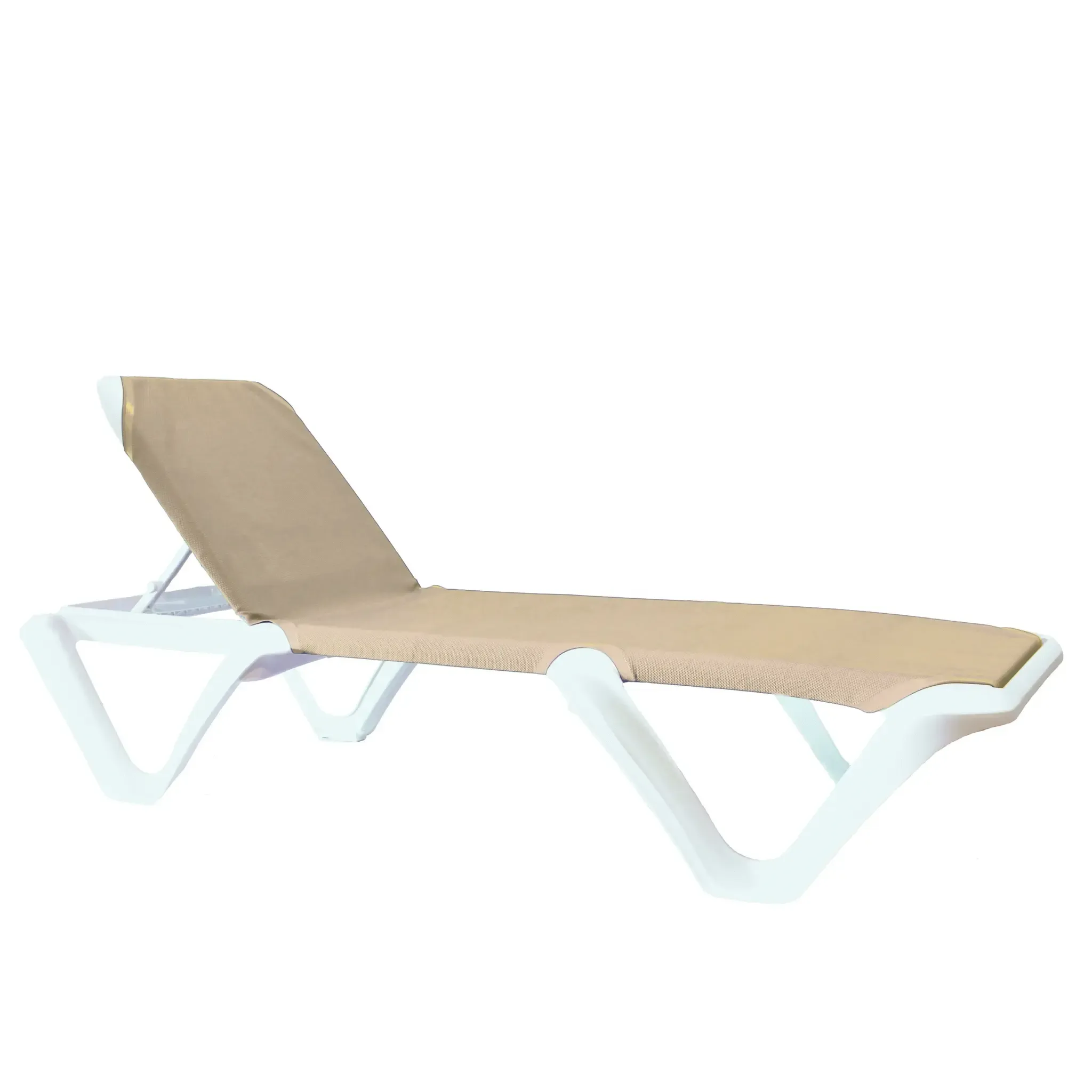 Efficiently organize spaces with practical elements. Introducing the Grosfillex 99904004 Outdoor Chaise, designed specifically for commercial restaurant use. This chaise features a khaki sling on a white frame, adding a touch of elegance to any outdoor dining area. The 3-position adjustable back allows for customizable comfort, while the stackable design makes storage a breeze. The woven vinyl coated polyester fabric is not only color-fast but also easy to clean, ensuring durability and longevity. With a white resin frame, this chaise is built to withstand the rigors of daily use in a busy restaurant setting. Ideal for large establishments, it offers both functionality and style. Whether you're creating a relaxing lounge area or providing comfortable seating for your guests, the Grosfillex 99904004 Outdoor Chaise is the perfect addition to your commercial restaurant space.