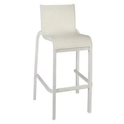 Uplift your dining experiences with elegant design. Introducing the Grosfillex US030096 Bar Stool, Stacking, Outdoor. This sleek and stylish bar stool is designed for outdoor use, making it perfect for commercial restaurants with outdoor seating areas. The white sling on a glacier white frame adds a touch of sophistication to any outdoor space. The textilene sling is not only comfortable but also features Microban anti-microbial treatment, ensuring a clean and hygienic seating option for your guests. The heavy-duty aluminum frame is built to withstand the rigors of daily use, while the footrest provides added comfort. With UV resistance, this bar stool will maintain its pristine appearance even under the harsh sun. This bar stool offers a cost-effective solution for your restaurant's seating needs. Elevate your outdoor dining area with the Grosfillex US030096 Bar Stool, Stacking, Outdoor.
