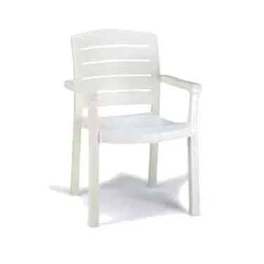 Enhance guest satisfaction with the Grosfillex US119004 Chair. This armchair is designed for outdoor use, making it perfect for commercial restaurants with outdoor seating areas. The contoured seat and ladder back provide ergonomic support, ensuring your guests are comfortable during their dining experience. The chair is made from Rexform UV resistant resin, which not only gives it a textured wood grain appearance but also ensures its durability and longevity. The satin finish adds a touch of elegance to any restaurant setting. With 2"x 2" legs and footpads, this chair is stable and secure. The white color adds a clean and modern look to your restaurant's outdoor space. Invest in the Grosfillex US119004 Chair and elevate your restaurant's outdoor seating area to new heights of comfort and style.
