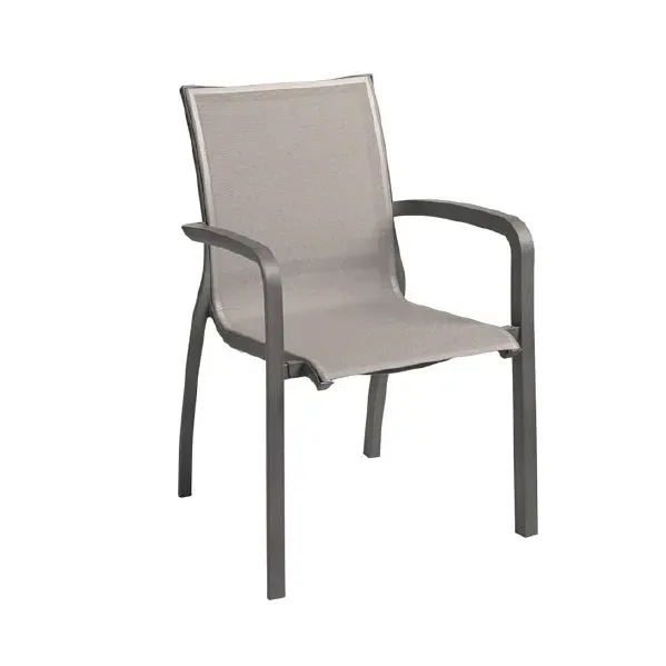 Craft a personalized dining experience effortlessly with the Grosfillex US644288 Armchair. Designed for commercial restaurant use, this stacking armchair combines style, durability, and comfort to enhance any outdoor dining space. The chair features a solid gray sling made from Microban anti-microbial treated textilene fabric, ensuring a clean and hygienic seating option for your guests. The volcanic black aluminum frame is UV and rust resistant, making it perfect for outdoor use. Nylon footpads provide stability and protect your floors from scratches. With its ASTM rating, this chair meets industry standards for safety and durability. Easy to clean and maintain, it is power washable and recyclable. The Grosfillex US644288 Armchair is an excellent choice to accommodate multiple guests. Elevate your restaurant's ambiance with the Grosfillex US644288 Armchair and provide your customers with a comfortable and stylish dining experience.