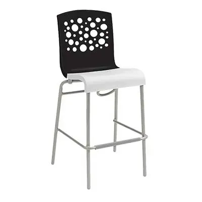 Create inviting spaces for socializing with the Grosfillex UT838017 Bar Stool. Designed for commercial restaurant use, this stacking barstool is perfect for creating a welcoming atmosphere. The stool features a resin back with a circle cutout, providing a stylish and modern look. The resin seat is stain-resistant and UV-resistant, ensuring durability and longevity. The tubular steel base with footpads offers stability and support, while the footrest adds comfort for guests. With its ASTM rating and recyclable materials, this bar stool is not only functional but also environmentally friendly. The black frame with a white seat adds a touch of elegance to any restaurant decor. This bar stool is convenient for outfitting your establishment. Elevate your restaurant's ambiance with the Grosfillex UT838017 Bar Stool and create a space where customers can relax and enjoy their dining experience.