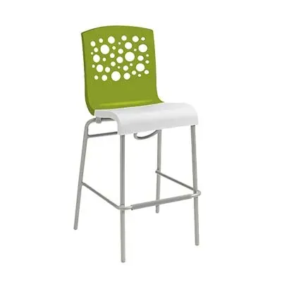 Craft inviting spaces with strategic arrangements using the Grosfillex UT838152 Bar Stool. Designed for commercial restaurant use, this stacking barstool is a perfect addition to any indoor dining area. The stool features a resin back with a stylish circle cutout, providing both comfort and aesthetic appeal. The resin seat is stain-resistant and UV-resistant, ensuring durability and longevity even in high-traffic areas. The tubular steel base with footpads offers stability and support, while the built-in footrest adds extra comfort for guests. With its fern green back and white seat, this bar stool adds a touch of elegance to any restaurant decor. The Grosfillex UT838152 Bar Stool is ASTM rated and recyclable, making it an eco-friendly choice. This bar stool is a cost-effective solution for restaurant owners. Create a welcoming and stylish atmosphere with this versatile and durable bar stool.