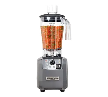 Unleash gastronomic brilliance with the Hamilton Beach HBF600 Blender. Designed for commercial restaurant use, this high-performance food blender is a game-changer in the kitchen. With a generous 64 oz. capacity, it can handle large batches of ingredients with ease. The leak-resistant lid ensures mess-free blending, while the polycarbonate container is durable and built to last. The adjustable speed dial allows for precise control, while the temperature gauge ensures optimal blending conditions. The jar pad sensor adds an extra layer of safety, automatically stopping the blender if the container is not properly in place. With its one-touch chopping function and versatile blend/chop/grind/puree options, this blender is a versatile tool for any culinary creation. Powered by a robust 3 Hp motor, it delivers exceptional blending power. Trust in the Hamilton Beach HBF600 Blender to elevate your restaurant's culinary offerings.