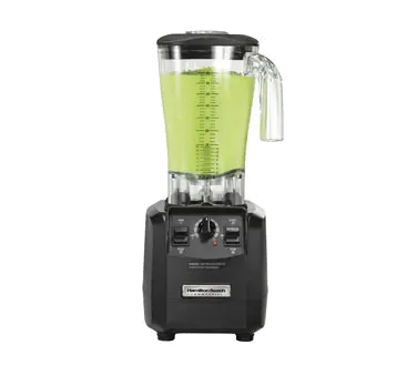 Master your restaurant's kitchen with the Hamilton Beach HBH550 Bar Blender. This high-performance blender is designed to meet the demands of a busy commercial restaurant. With its powerful 3 Hp motor and stainless steel blades, it can effortlessly blend even the toughest ingredients to create smooth and consistent results every time. The 64 oz. capacity and stackable polycarbonate container allow for large batch blending, perfect for busy kitchens. The paddle switches, variable timer, jump cycle, and pulse switch give you complete control over the blending process, ensuring precise and customized results. The Wave-Action System and Sure Grip feet further enhance the blender's performance, preventing spills and providing stability during operation. Additionally, the auto shutoff and removable filler cap make it easy to use and clean. Trust in the Hamilton Beach HBH550 Bar Blender to deliver exceptional blending performance and efficiency in your commercial restaurant.