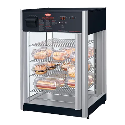 Elevate your dining experience with Hatco's FDWD-1X Display Cabinet. This Flav-R-Fresh Holding & Display Cabinet is designed to meet the needs of commercial restaurants, ensuring that your food stays fresh and visually appealing. With its counter model design, this cabinet is perfect for showcasing your delicious creations to customers. The cabinet features one door and four shelves, providing ample space for displaying a variety of food items. The interior multi-purpose rack allows for versatile storage options, while the absence of a rack motor ensures quiet operation. Made in the USA and certified by cULus and UL EPH Classified, this cabinet guarantees top-notch quality and safety. Its compact dimensions of 28.54" height, 19.39" width, and 20.89" depth make it a space-saving solution for any restaurant. Trust Hatco's FDWD-1X Display Cabinet to enhance your restaurant's presentation and keep your food fresh and enticing.