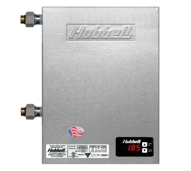 Maximize convenience with the Hubbell Water Heaters JTX048-6R Booster Heater. Designed specifically for commercial restaurant use, this tankless electric heater is a reliable and efficient tool that ensures a steady supply of hot water. With its 48.0 kW power and (6) incoloy-sheathed heating elements, this heater delivers quick and consistent heating performance. The solid state switches and electronic digital display controller allow for easy operation and precise temperature control. Equipped with a brass pressure reducing valve with bypass, (2) temperature & pressure gauges, and (2) dielectric unions, this heater ensures safety and durability. The stainless steel exterior adds to its longevity and makes it easy to clean. UL, cUL, and UL EPH (ANSI NSF 5) certified, this booster heater meets the highest industry standards. Upgrade your restaurant's hot water system with the Hubbell Water Heaters JTX048-6R Booster Heater for reliable performance and enhanced efficiency.