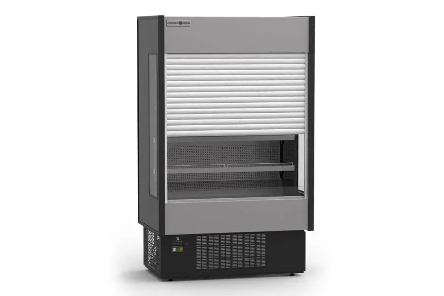 Introducing the Hydra-Kool KGH-ES-80-S Grab and Go High Profile Merchandiser with electric front shutter. Craft a display of quality using this multiplexible unit, designed specifically for commercial restaurant use. With its sleek silver front panel and grey bottom front panel, this merchandiser is not only visually appealing but also built to last with a PVC coated grey steel interior. The adjustable shelves with product stops allow for easy organization and display of your products, while the key-lockable night curtain ensures security during non-business hours. The LED lighting in the canopy and under all shelves illuminates your products, making them even more enticing to customers. The digital controller allows for precise temperature control, ensuring your food stays fresh and at the optimal temperature. With its self-contained refrigeration system and ETL-Sanitation and cETLus certifications, this merchandiser is a reliable and efficient addition to any commercial restaurant.