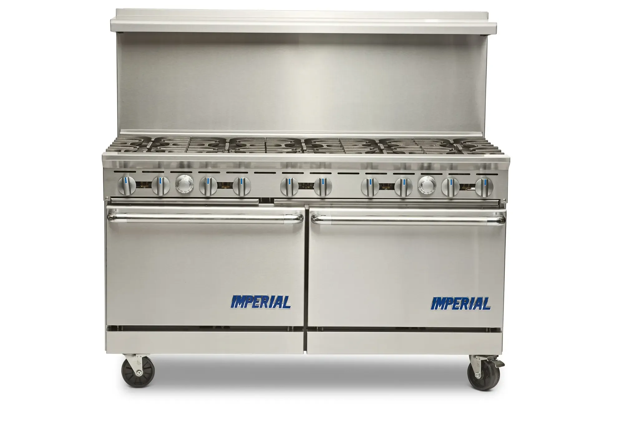 Master your restaurant's kitchen with the Imperial IR-10-XB Range. This 60" gas restaurant range is designed to meet the demands of a busy commercial kitchen. With 10 open burners, you'll have plenty of cooking space to prepare multiple dishes at once. The standard oven provides even heat distribution for perfect baking results every time. The open cabinet and bottom shelf offer convenient storage for pots, pans, and other kitchen essentials. Made with stainless steel construction, this range is built to withstand the rigors of a busy kitchen and is easy to clean. The removable crumb tray makes maintenance a breeze. With adjustable feet and 6" legs, you can easily customize the height to fit your kitchen setup. With a powerful 355,000 BTU, this range delivers the performance you need to keep up with high-volume cooking. NSF, CE, CSA Flame, and CSA Star certified, you can trust the quality and safety of this Imperial range. Upgrade your kitchen with the Imperial IR-10-XB Range and experience the difference in efficiency and reliability.