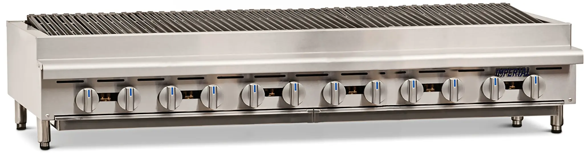 Fuel your passion for cooking with the Imperial, IRB-72, Charbroiler, Gas, Countertop. This high-quality charbroiler is designed to meet the demands of a commercial restaurant kitchen. With its 72" size, it provides ample space for grilling a variety of meats and vegetables to perfection. The cast iron radiants and slanted top grates ensure even heat distribution and create those coveted grill marks that customers love. The full-width grease gutter and removable drip pan make cleaning a breeze, saving you valuable time and effort. The stainless steel burners, front, sides, and landing ledge not only add durability but also give the charbroiler a sleek and professional look. With 180,000 BTU of power, this charbroiler delivers exceptional performance and efficiency. Trust in the Imperial, IRB-72, Charbroiler, Gas, Countertop to elevate your restaurant's grilling game and satisfy your customers' cravings.