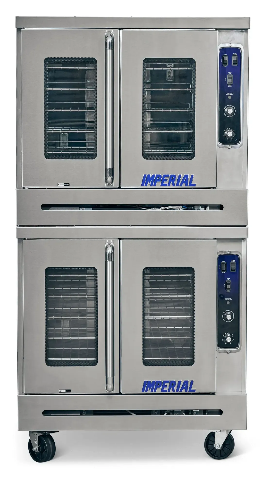 Culinary artistry redefined with the Imperial PCVG-2 Gas Convection Oven. This top-of-the-line oven from Imperial is designed to meet the demands of a busy commercial restaurant kitchen. With its double deck and standard depth, this oven offers ample space for cooking multiple dishes simultaneously. The one-hand open and close feature allows for easy access, while the 60/40 doors swing open to 130 , providing convenience and flexibility. The large window and two interior lights ensure excellent visibility of the cooking process. The stainless steel exterior not only adds a sleek and professional look to your kitchen but also ensures durability and easy cleaning. The rugged HP 2-speed motor per oven delivers powerful performance, while the porcelainized oven interior guarantees easy cleaning and better browning. With five oven racks and 10 rack positions, this oven offers the most spacious interior available, allowing you to cook large quantities of food at once. The curved corners make cleaning a breeze, and the digital electronic controls provide precise temperature control. Elevate your culinary creations with the Imperial PCVG-2 Gas Convection Oven.