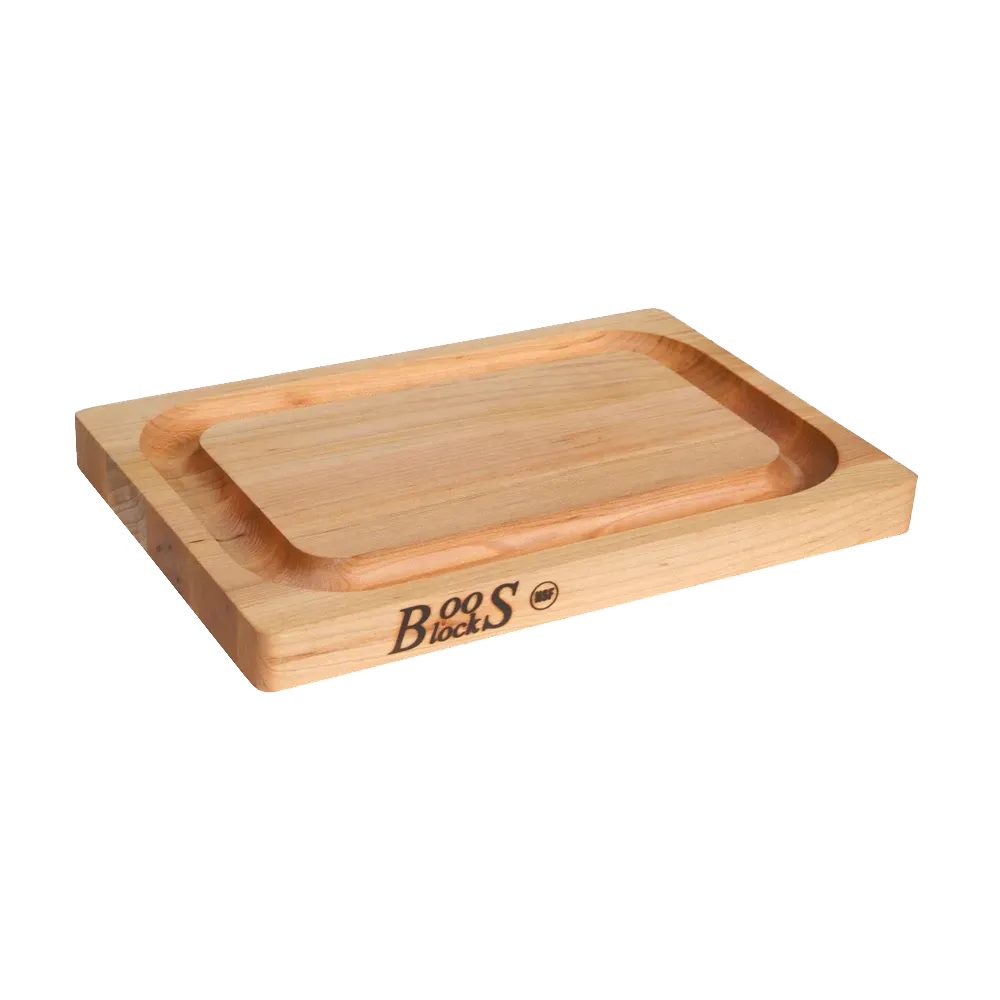 Revamp service with clever options using the John Boos, 209, Cutting Board, Wood. This Chop-N-Slice Cutting Board is a must-have for any commercial restaurant. With its 12W x 8D x 1 thick dimensions, it provides ample space for slicing, dicing, and chopping ingredients. The edge grain construction ensures durability and longevity, making it perfect for heavy-duty use in a busy kitchen. Made from antimicrobial Northern Hard Rock Maple, this cutting board is not only hygienic but also resistant to bacteria growth. The grooved design prevents juices from spilling onto the countertop, keeping your workspace clean and safe. The reversible feature allows you to use both sides of the board, maximizing its functionality. To maintain its quality, simply apply the Antimicrobial Boos Block Cream Finish with Beeswax. Upgrade your restaurant's cutting board game with the John Boos, 209, Cutting Board, Wood.