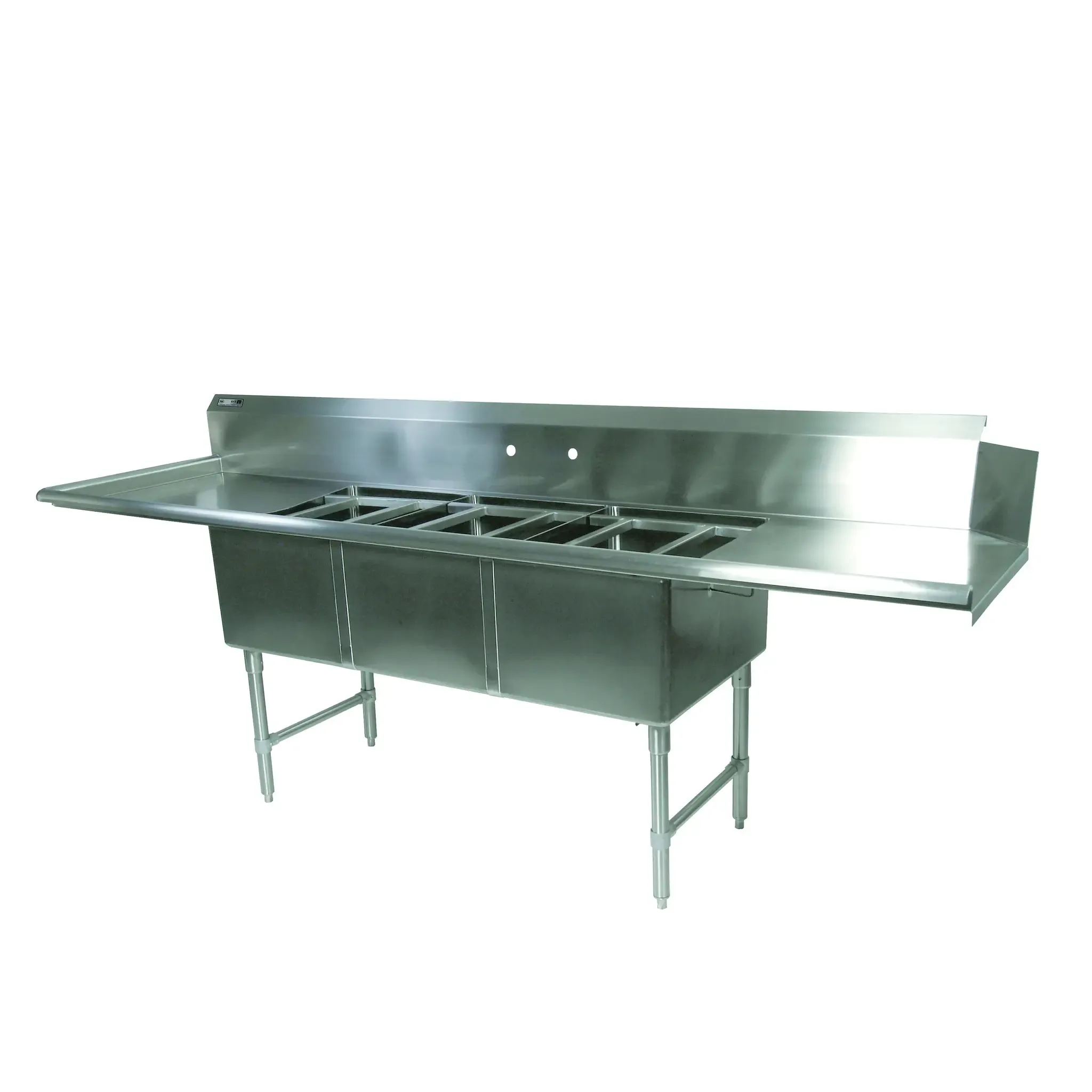 Optimize efficiency with intelligent solutions through the John Boos DT3PB18244-2D18L Dishtable with Potsinks. This commercial-grade dishtable is designed to streamline your restaurant's dishwashing process, ensuring a smooth and organized operation. With its clean and straight design, this dishtable offers a spacious overall size of 91-58W x 30-38D x 44-116H, providing ample space for your dishwashing needs. The dishtable features three 18W x 24 front-to-back x 14 deep compartments, allowing for efficient sorting and cleaning of dishes. It also includes two 18 drainboards and a dish machine attachment on the right side, maximizing productivity. The 10H boxed backsplash and stainless steel construction ensure durability and easy cleaning. The dishtable comes with a set of splash mount faucet holes with 8 centers, providing convenience and flexibility. With its NSF and CSA-Sanitation certifications, this John Boos Dishtable with Potsinks is a reliable and efficient addition to any commercial restaurant.