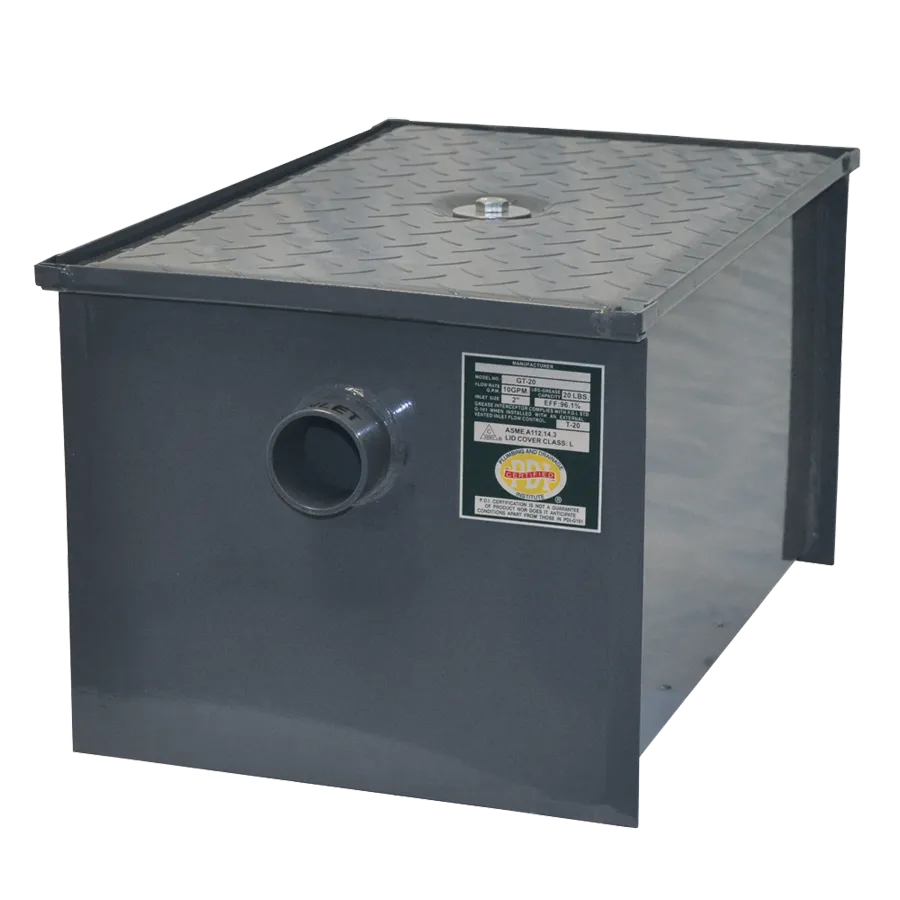 Optimize efficiency with clever solutions through the John Boos GT-14 Grease Interceptor. Designed specifically for commercial restaurant use, this grease interceptor is a must-have for any busy kitchen. With a 14 lb. grease capacity and a 7 gallons per minute flow rate, it effectively traps and separates grease, preventing clogs and costly plumbing issues. The 2 inlet/outlet and no-hub connections make installation a breeze, while the T-Vent included ensures proper ventilation. The no-skid cover and removable baffle allow for easy maintenance and cleaning. Made from 18 thick carbon steel, this PDI certified grease interceptor is built to last. Its integral trap and vented inlet flow control device further enhance its functionality. Trust John Boos, a reputable vendor in the industry, to provide you with a reliable and efficient grease interceptor that will keep your restaurant running smoothly.