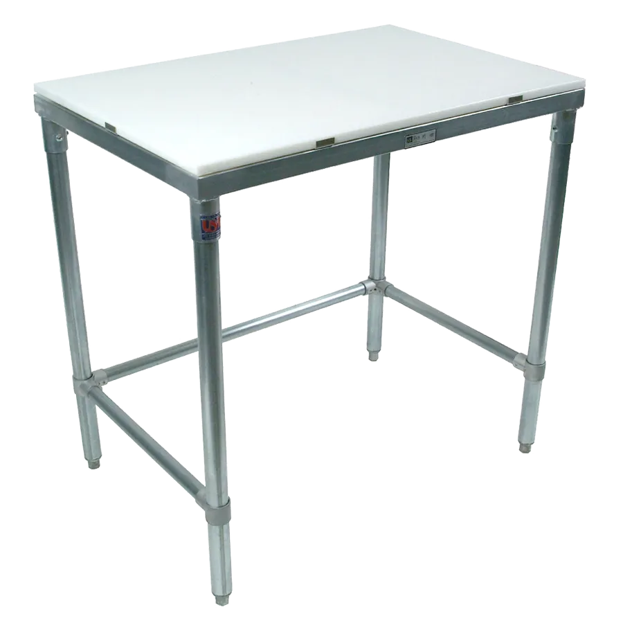 Elevate service with intelligent choices using the John Boos M002 Work Table with Poly Top. This versatile table is designed to meet the demands of a commercial restaurant setting, offering both functionality and durability. The 48-inch wide by 24-inch deep table provides ample space for food preparation, while the 34-inch reversible flat poly top is easy to clean and resistant to stains and scratches. The galvanized legs, adjustable side and rear bracing, and bullet feet ensure stability and support during heavy use. With NSF and CSA-Sanitation certifications, this table meets the highest standards of cleanliness and safety. Whether you need a reliable workstation for chopping vegetables or assembling ingredients, the John Boos M002 Work Table with Poly Top is the perfect choice for any busy restaurant kitchen.