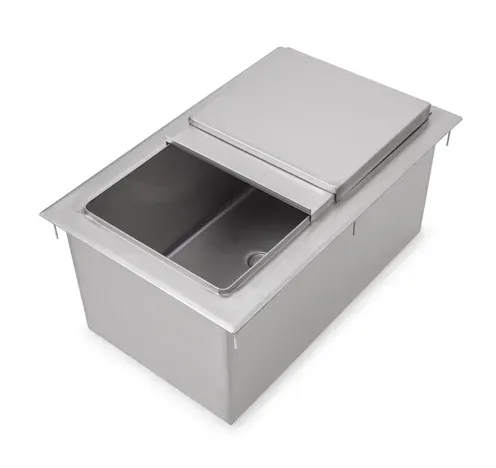 Revamp service with clever options using the John Boos PB-DIIB3418 Ice Bin, Drop-In. This stainless steel ice bin is designed to enhance efficiency and convenience in a commercial restaurant setting. With an overall size of 34W x 18D x 12H, it provides ample space for storing ice, ensuring a steady supply for your customers. The insulated ice bin measures 30W x 13 front-to-back x 10 deep, keeping the ice cold for longer periods. The removable sliding lid allows for easy access and maintenance, while the drain ensures hassle-free cleaning. The recommended cutout size of 33W x 17-18D makes installation a breeze. NSF certified, this ice bin guarantees safety and durability. Upgrade your restaurant's beverage service with the John Boos PB-DIIB3418 Ice Bin, Drop-In, and provide your customers with refreshing drinks all day long.