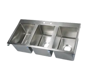 Revitalize service with versatile options through the John Boos PB-DISINK101410-3 Sink, Drop-In. This stainless steel sink is designed specifically for commercial restaurant use, offering three compartments for efficient dishwashing and food preparation. With an overall size of 36W x 18-12D x 10H, this sink provides ample space for washing large pots, pans, and utensils. The three 10W x 14 front-to-back x 10deep bowls are perfect for separating different types of dishes, ensuring a hygienic and organized kitchen. The deck mount faucet holes with 4 centers allow for easy installation of a faucet (not included), while the 3-12 drain opening with basket drain ensures quick and efficient drainage. NSF and CSA-Sanitation certified, this sink guarantees the highest standards of cleanliness and safety. Upgrade your restaurant's kitchen with the John Boos PB-DISINK101410-3 Sink, Drop-In and experience enhanced productivity and cleanliness.